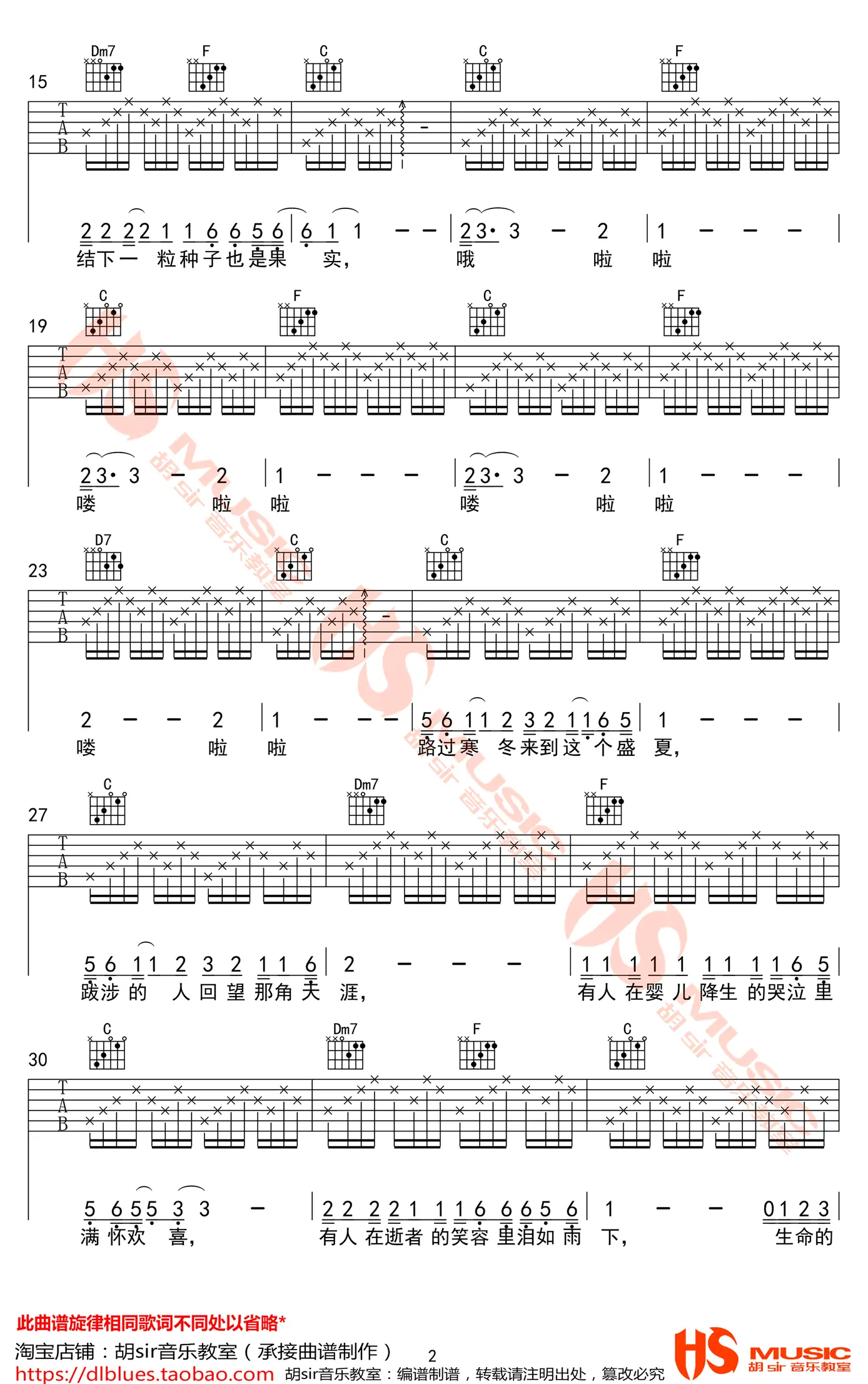 《你的姑娘》吉他谱_隔壁老樊_C调指法_带前奏_弹唱谱_原版图片谱