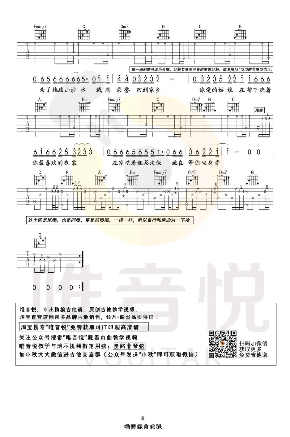 《你的姑娘》吉他谱,隔壁老樊作词、作曲并演唱的一首流行歌曲,2019年发行,收录于专辑《我曾》。原调bD,吉他谱选用C调指法,capo夹一品,2张图片谱,由唯音悦编配出品。