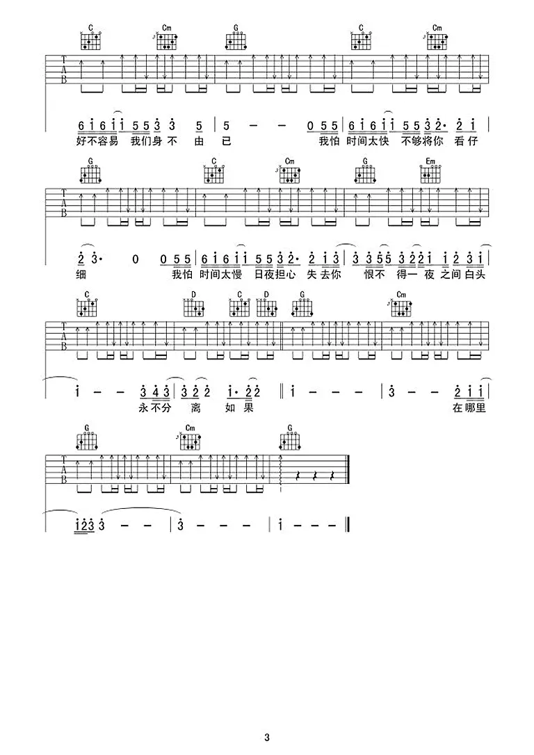 好几年吉他谱_刘心_C调_原版改编_图片谱
