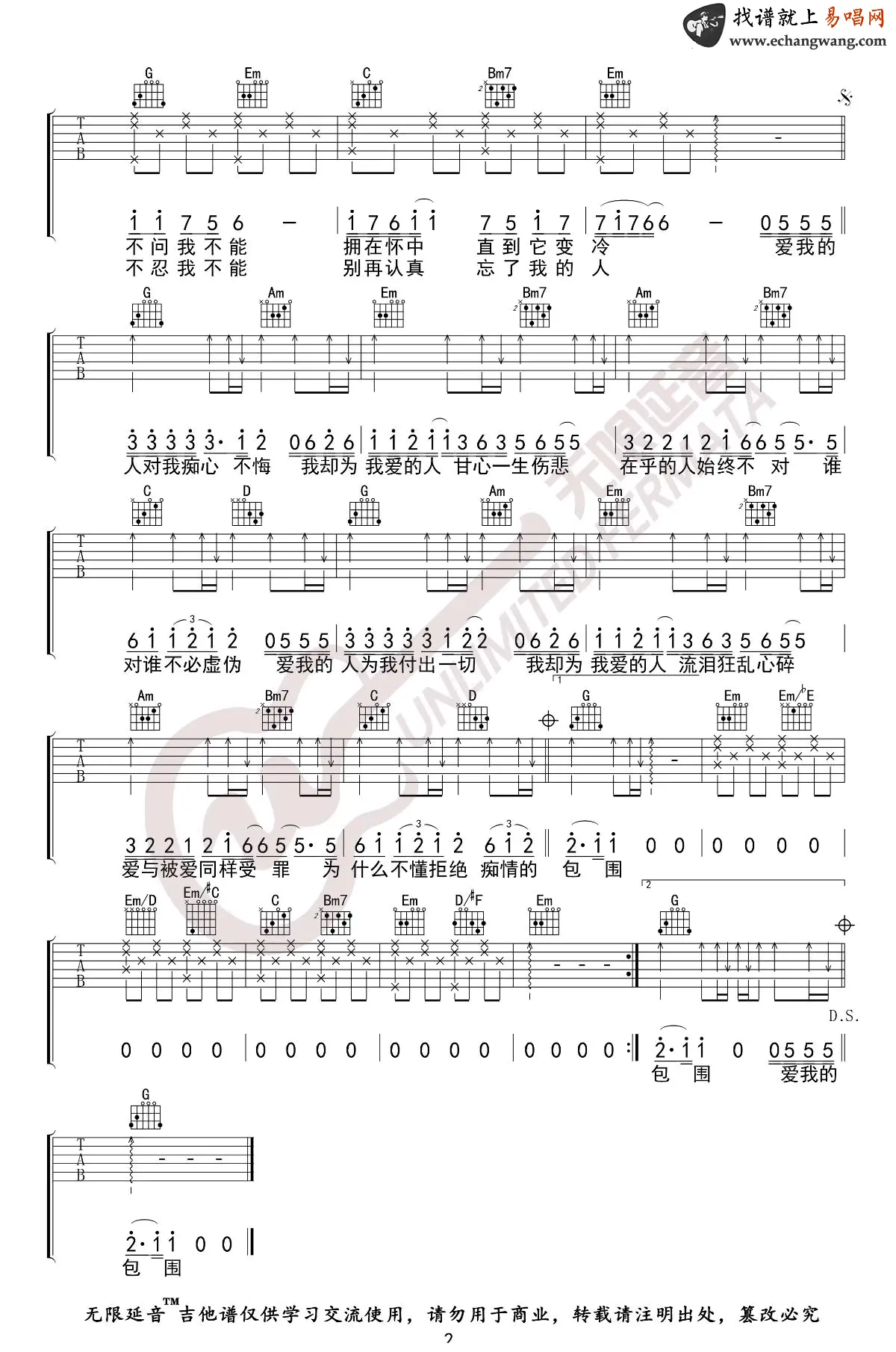 《爱我的人和我爱的人》吉他谱_裘海正/游鸿明_G调_高清弹唱谱_图片谱
