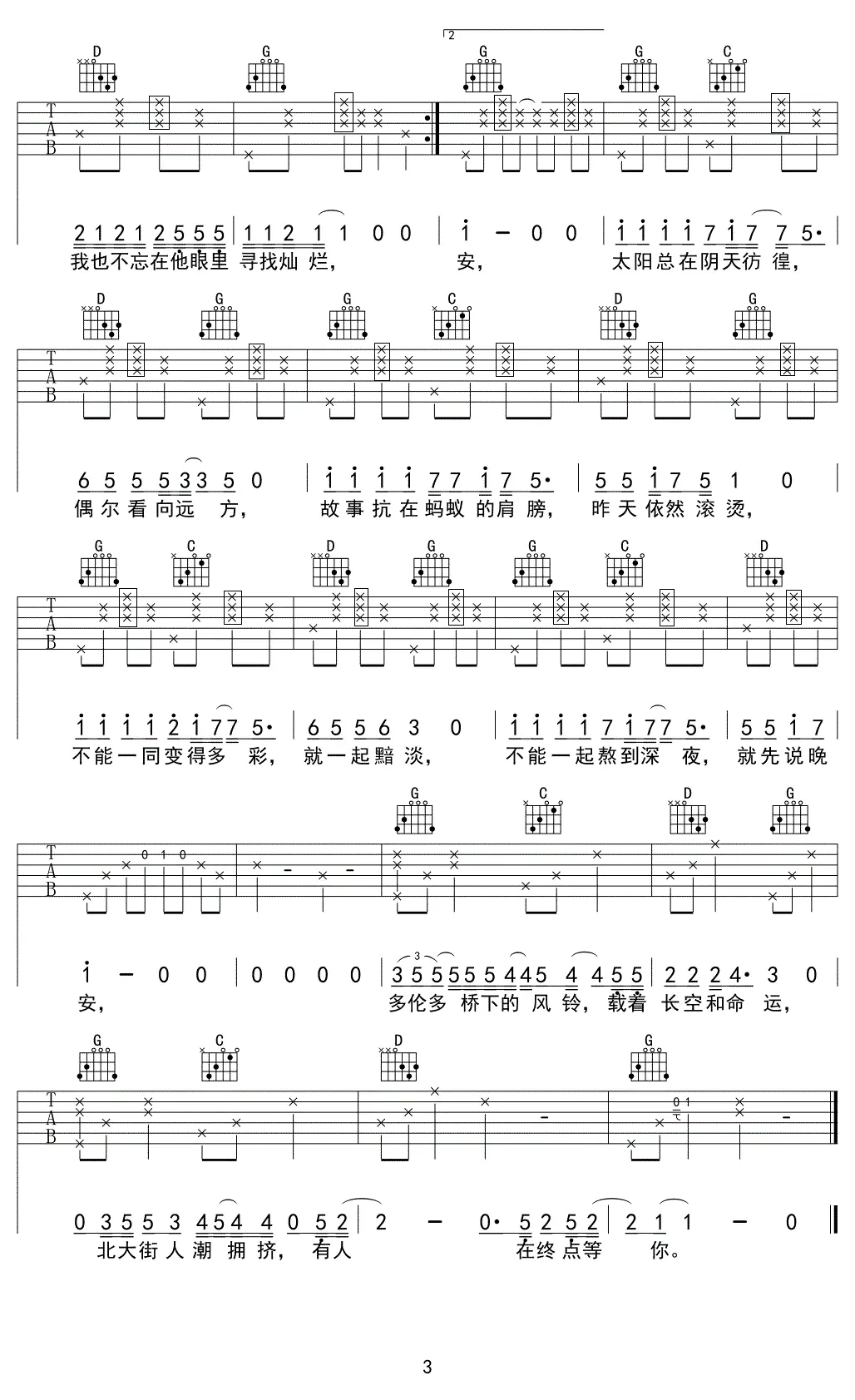 《鸽子》吉他谱_徐秉龙_C调_高清图片谱_六线谱