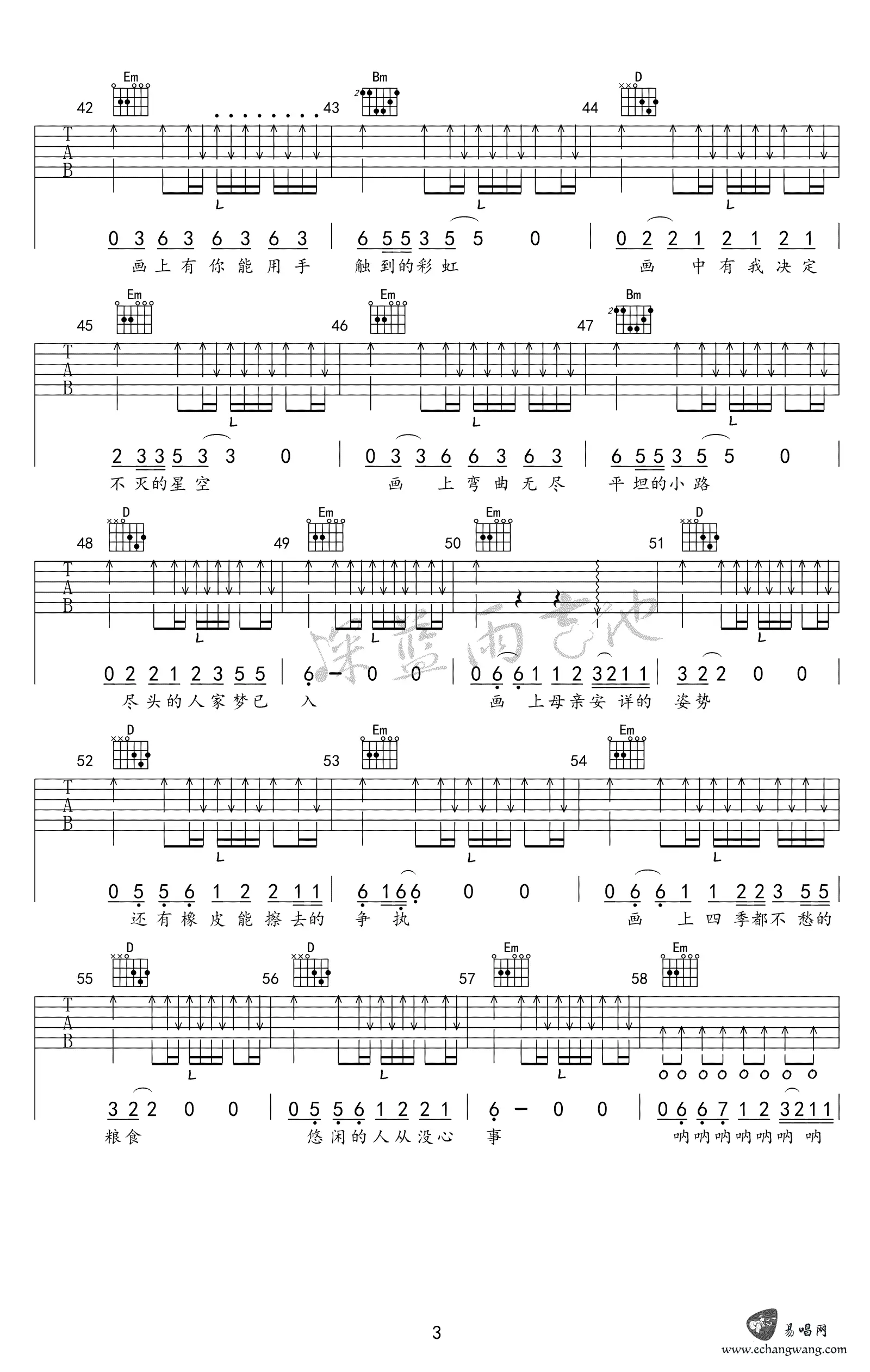 《画》吉他谱_赵雷_G调_高清弹唱谱_六线谱_图片谱