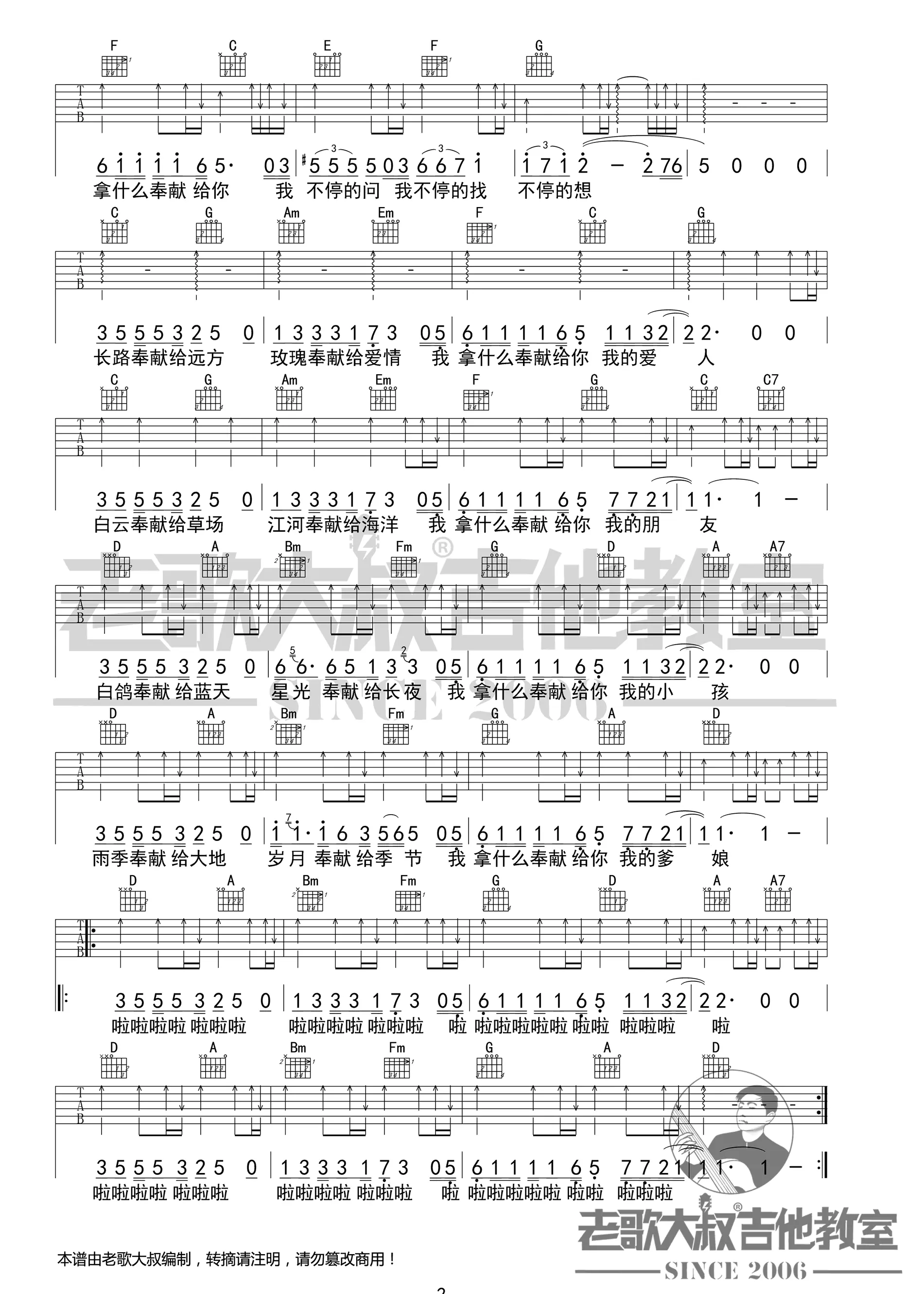 《啷个哩个啷》吉他谱_鹏泊_C调指法_弹唱谱_图片谱_六线谱