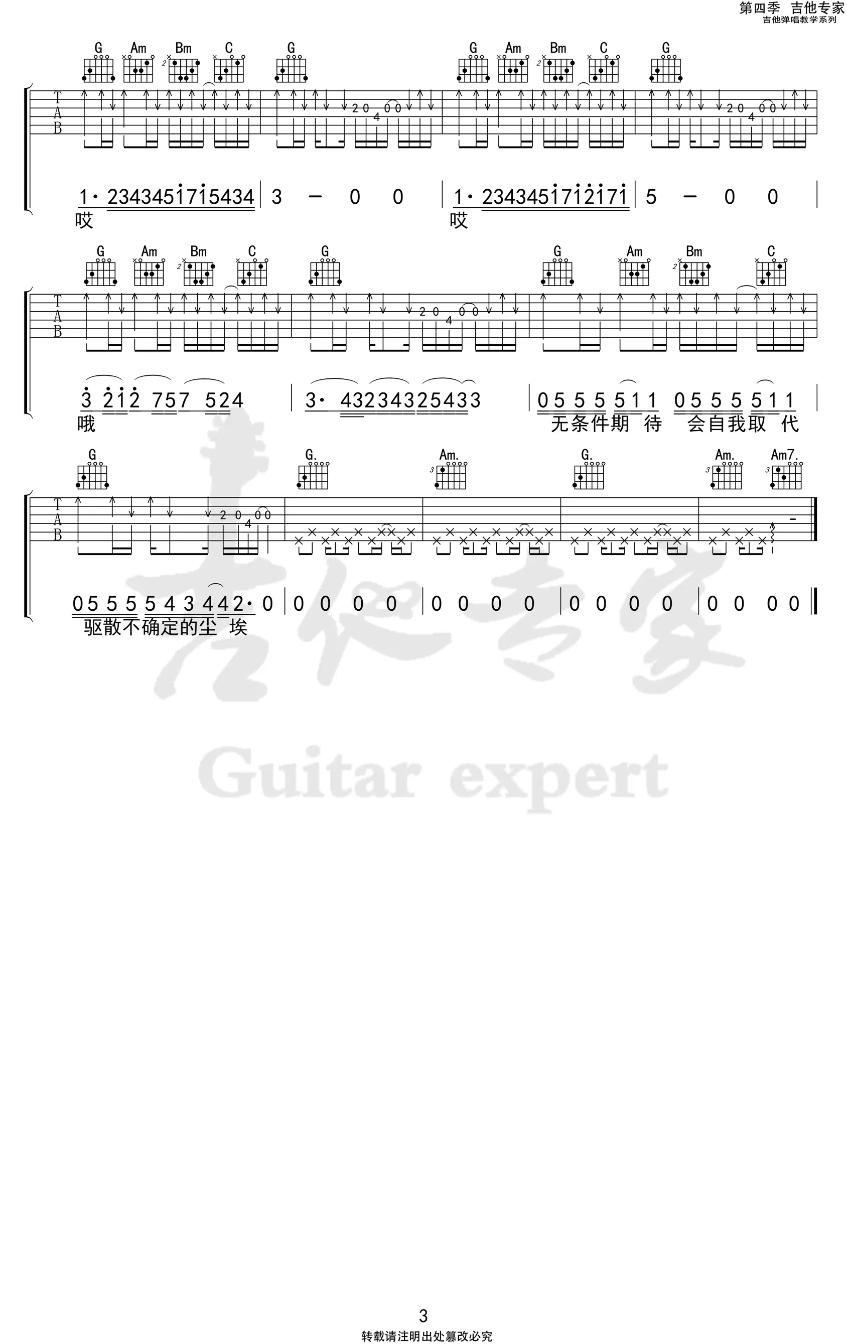 《第三人称》吉他谱_Hush_G调弹唱谱_高清图片谱_六线谱