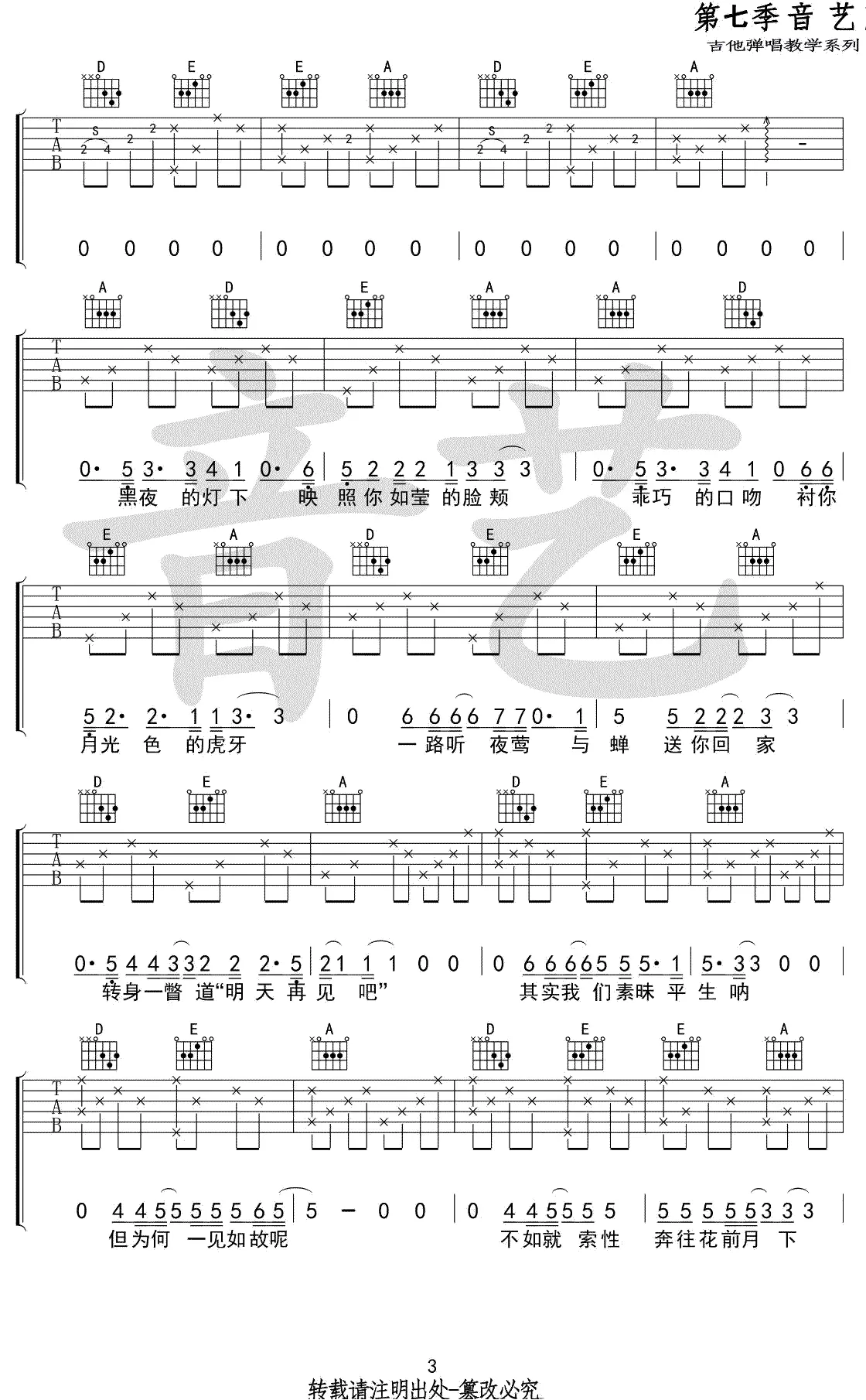 《如故》吉他谱,七修远演唱的一首歌曲,由墨鱼丝、七修远作词作曲,收录于2017年发行的专辑《知更》中。 吉他谱选调G调,变调夹夹2品,共4张图片谱,由艺音编配出品。