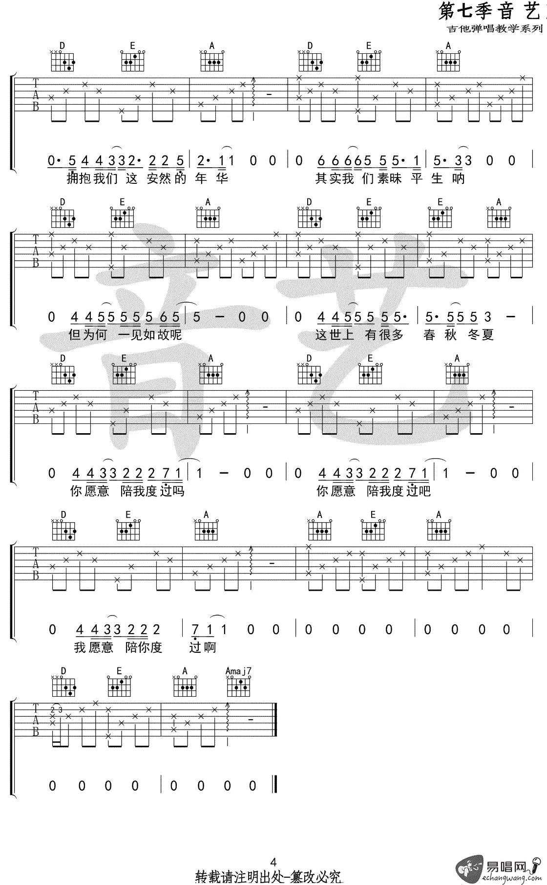《如故》吉他谱_七修远_G调弹唱谱_高清图片谱_六线谱