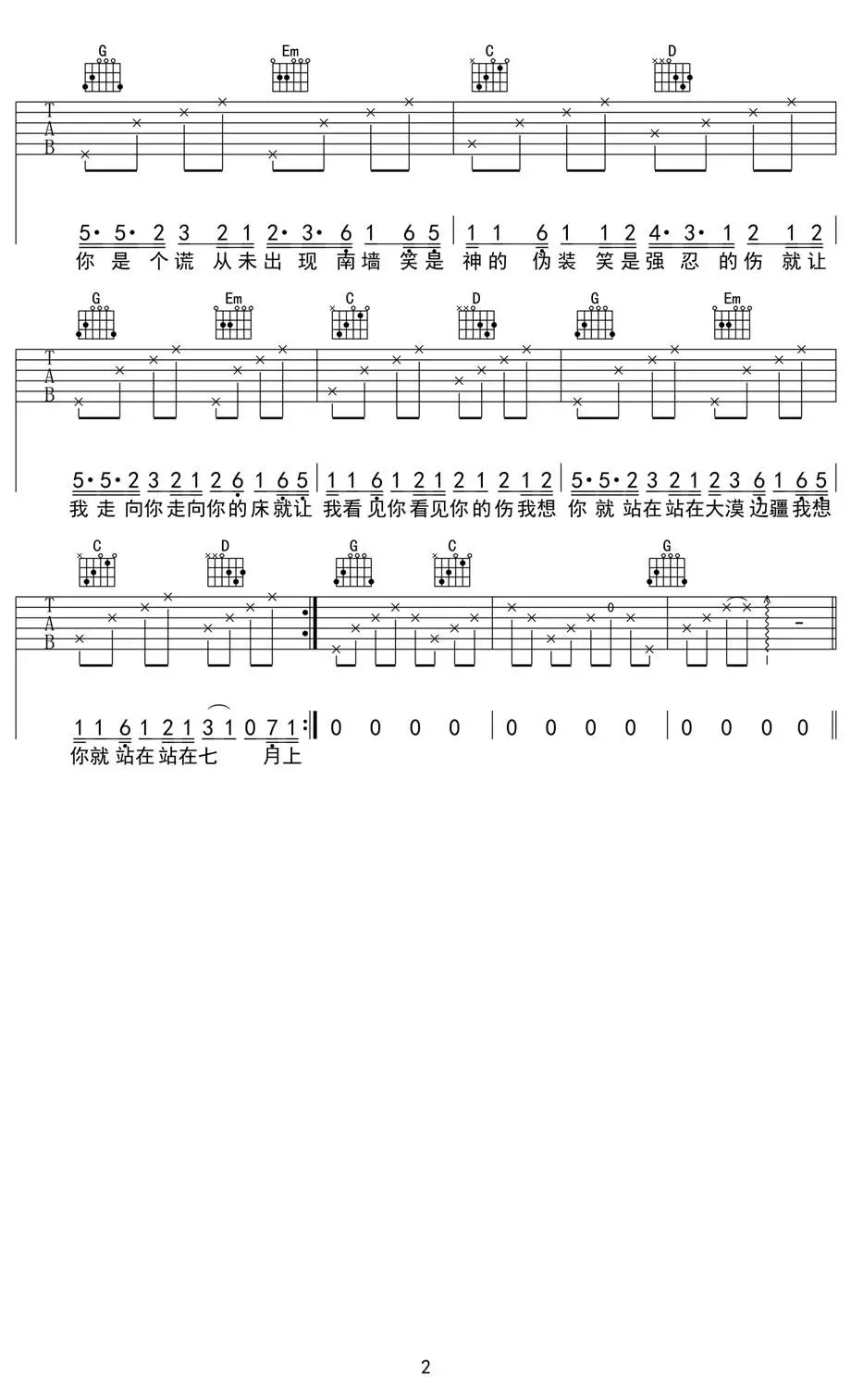 南山南吉他谱_马頔_G调指法_弹唱谱_图片谱