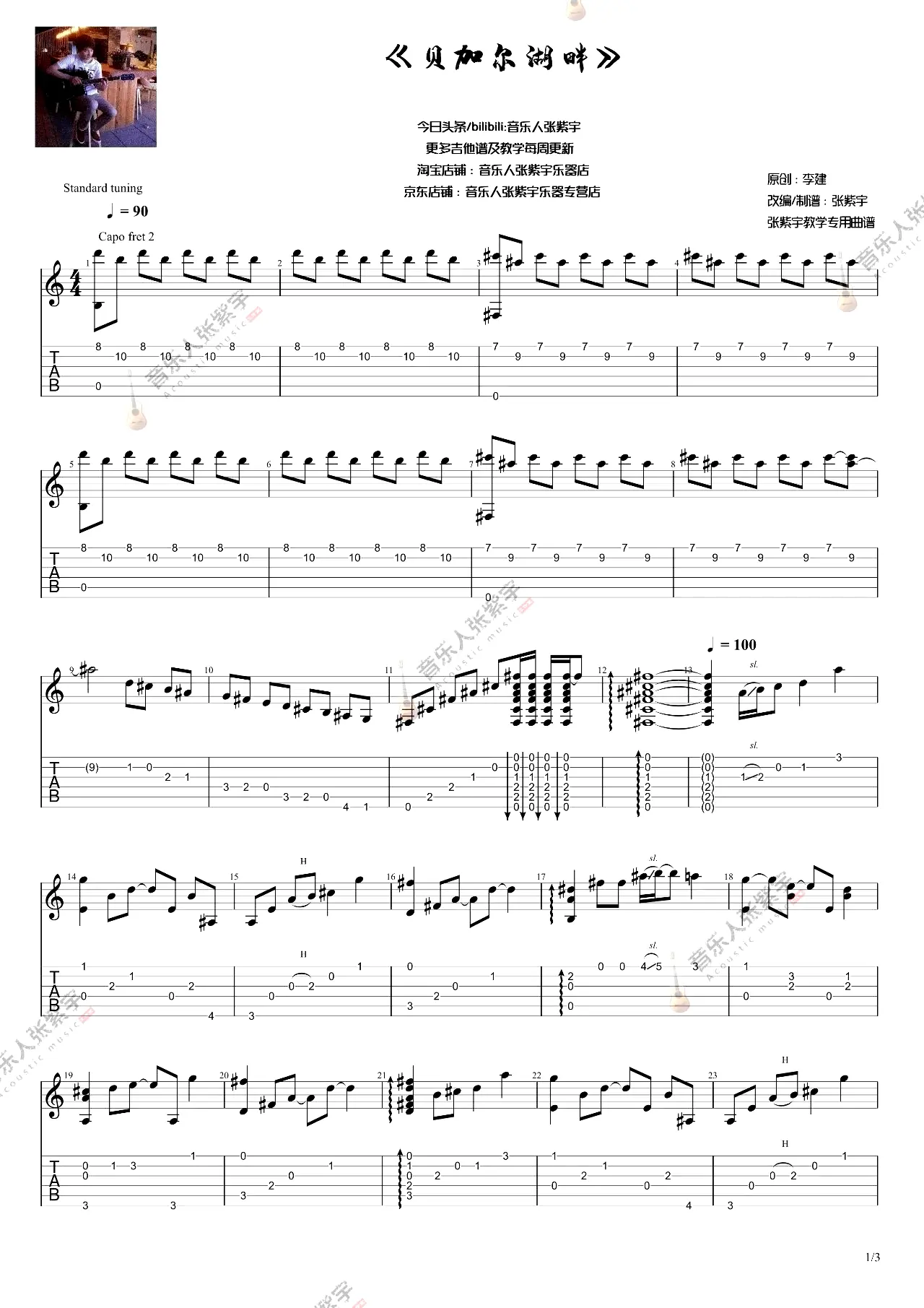 贝加尔湖畔指弹谱_张紫宇改编_六线图片谱