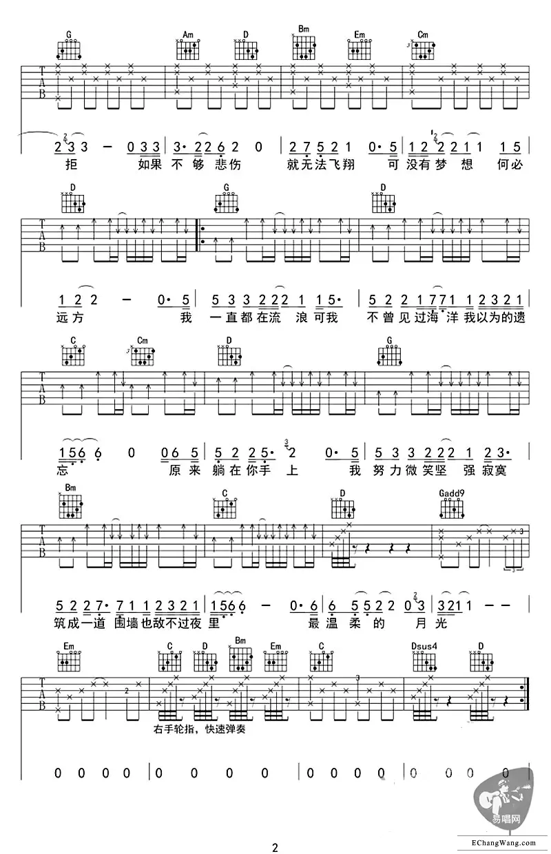 《残酷月光》吉他谱,林宥嘉演唱,由向月娥作词,陈小霞作曲,收录于2008年发行的专辑《神秘嘉宾》中。吉他谱选调G调,变调夹夹2品,演奏难度简单,共2张图片谱。