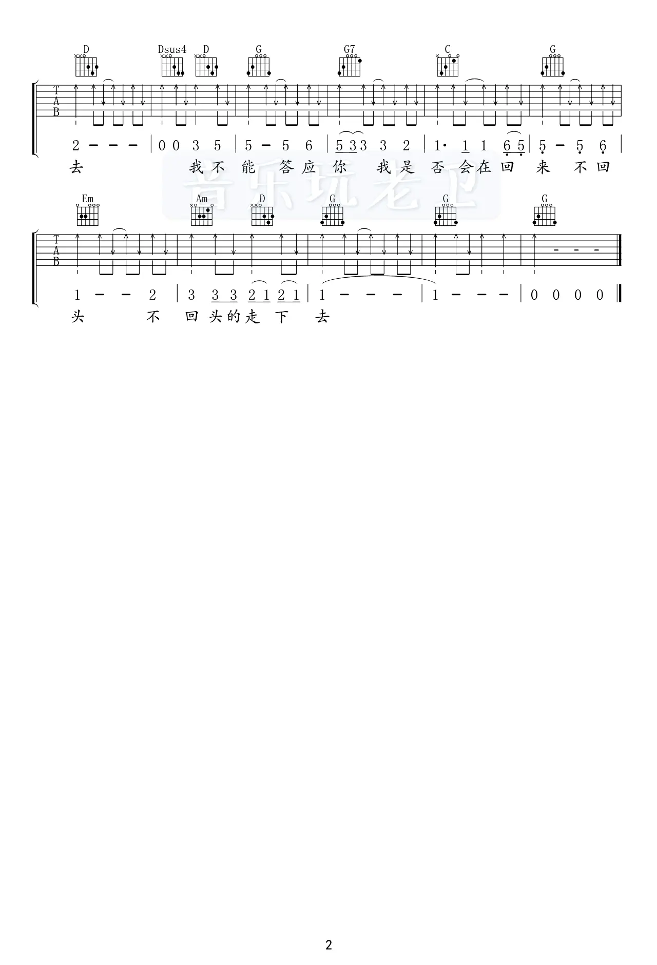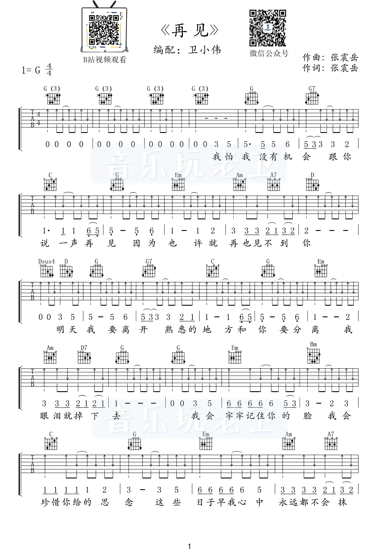 再见吉他谱_张震岳_G调扫弦版_高清六线谱