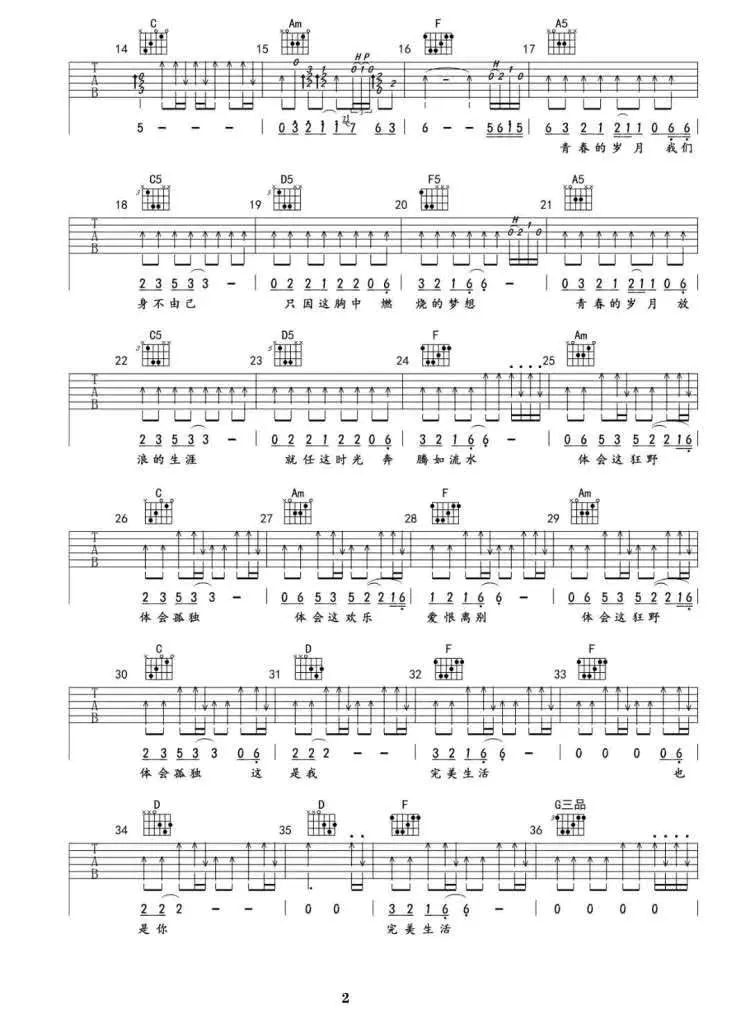 完美生活吉他谱_许巍_C调指法_六线谱_高清图片谱