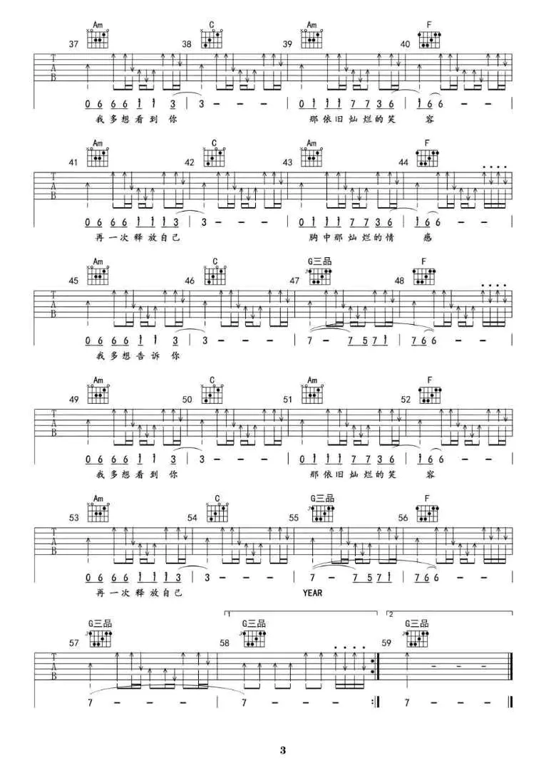 在每个想你的夜里吉他谱_李健_F调_弹唱谱_六线图片谱