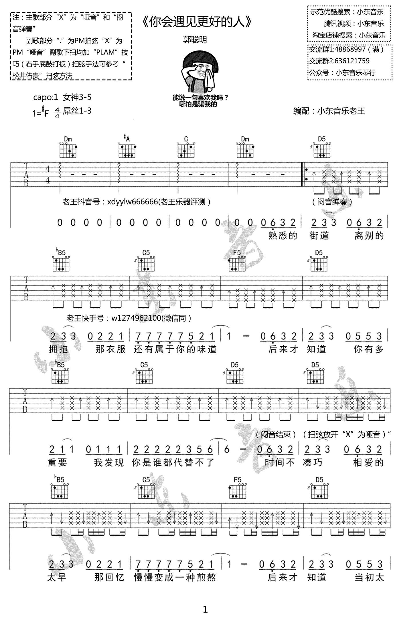 《你会遇见更好的人》吉他谱_郭聪明_弹唱谱_六线谱_图片谱