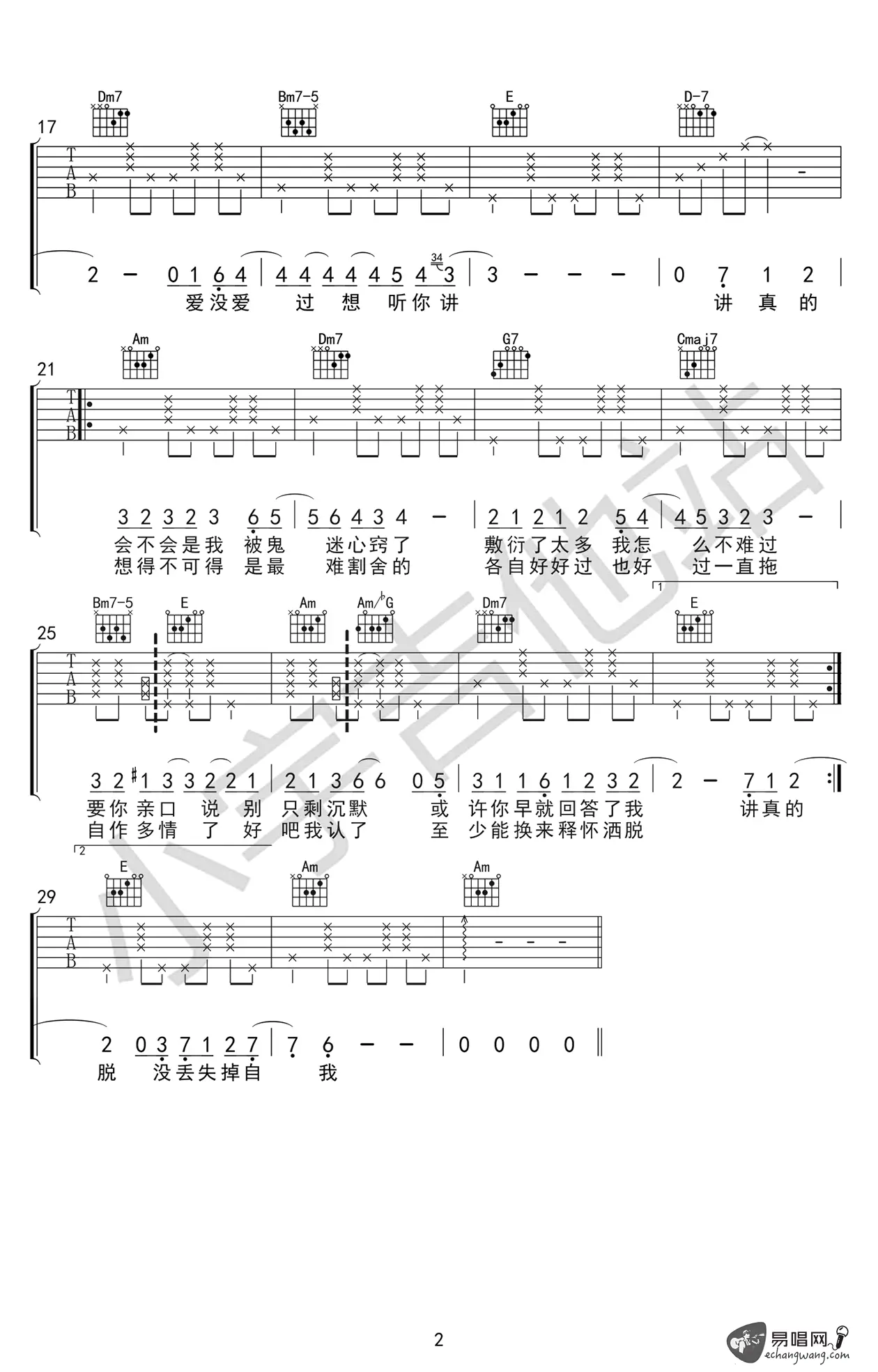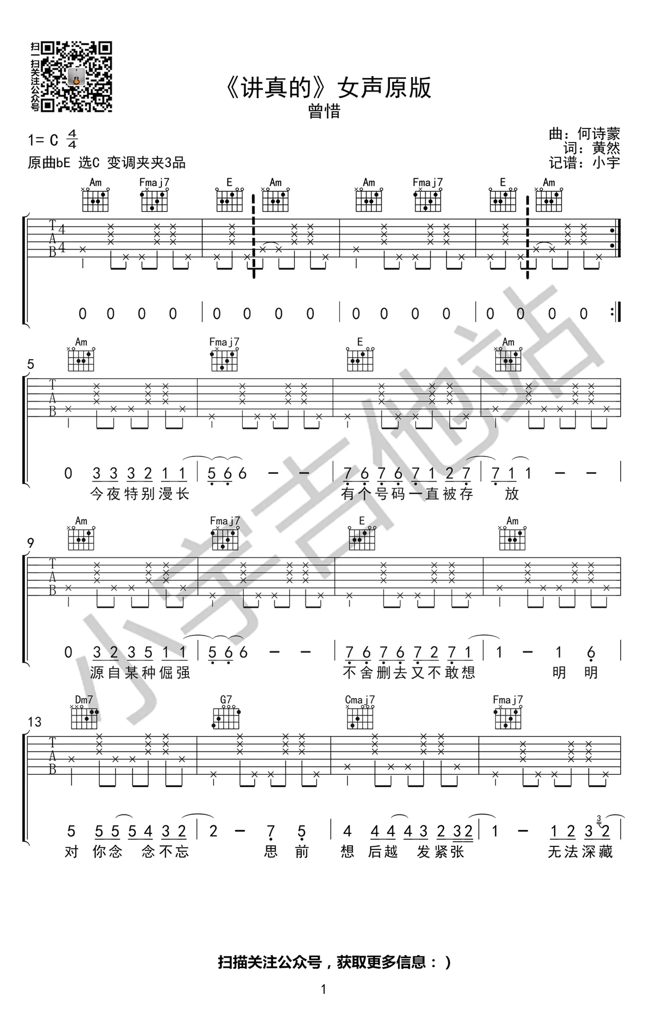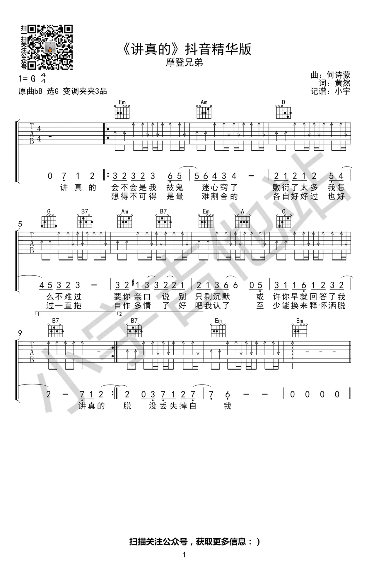 《讲真的》吉他谱_曾惜/摩登兄弟_双版本弹唱谱_C调_G调_抖音歌曲_高清六线谱