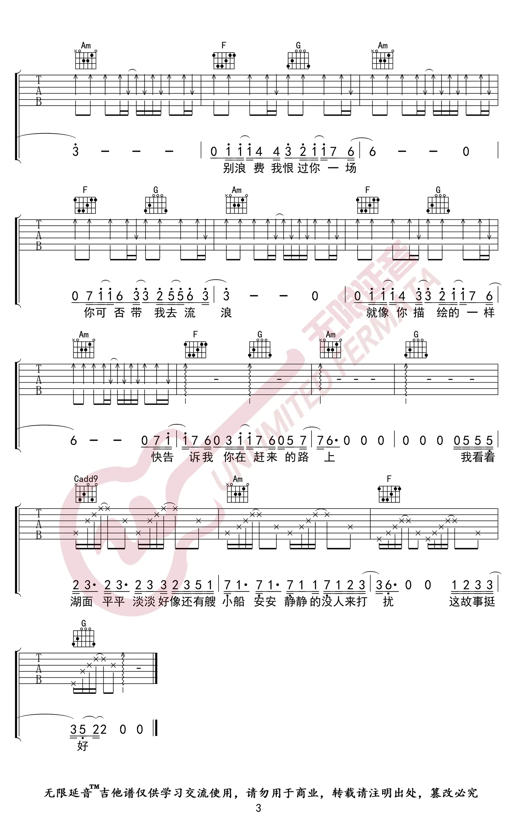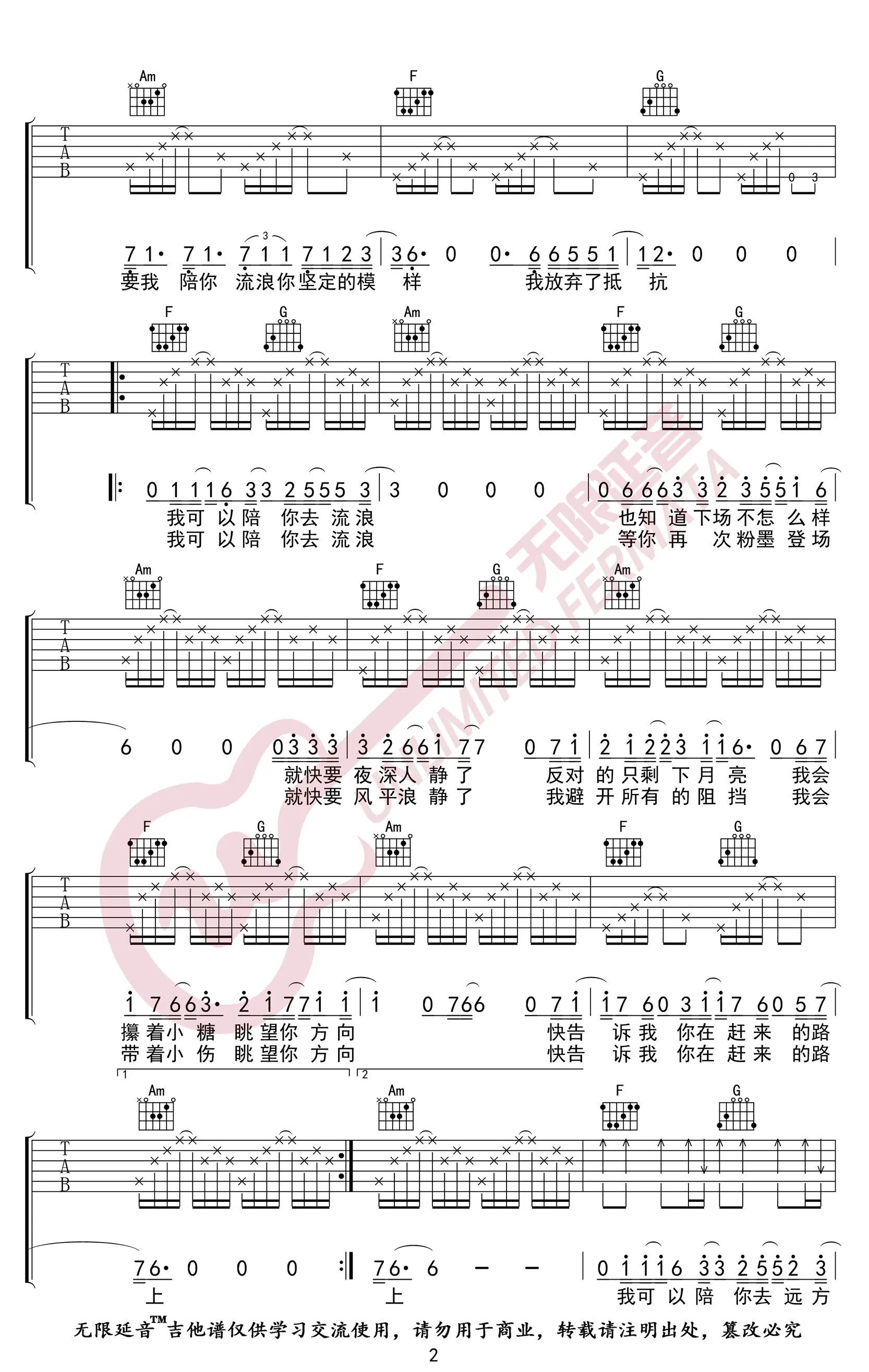 《陪你去流浪》吉他谱_薛之谦_C调_高清弹唱谱_图片谱