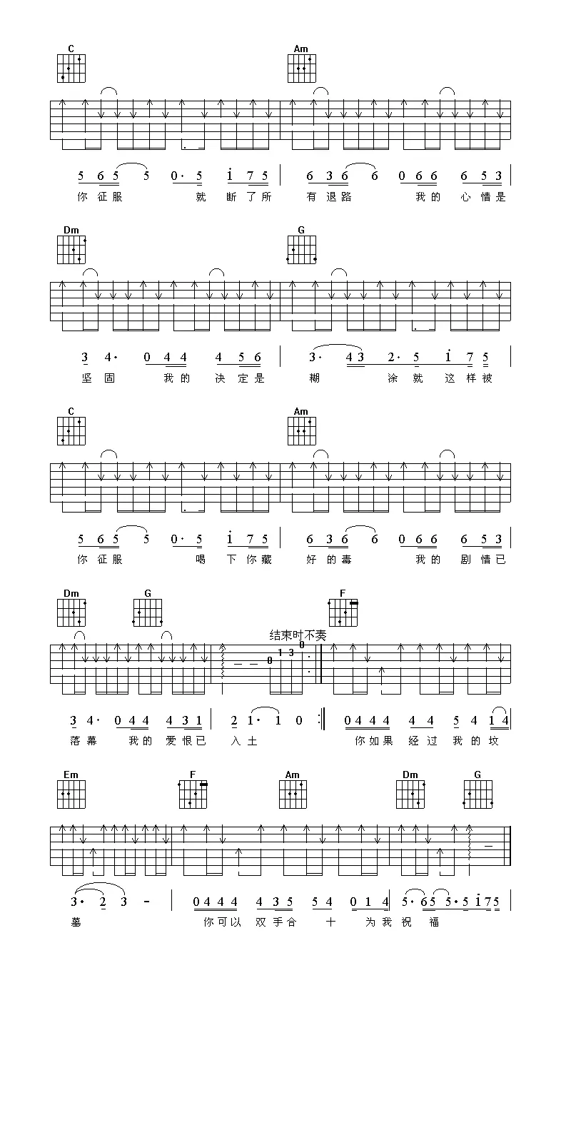 征服吉他谱_那英_C调_弹唱谱_六线图片谱