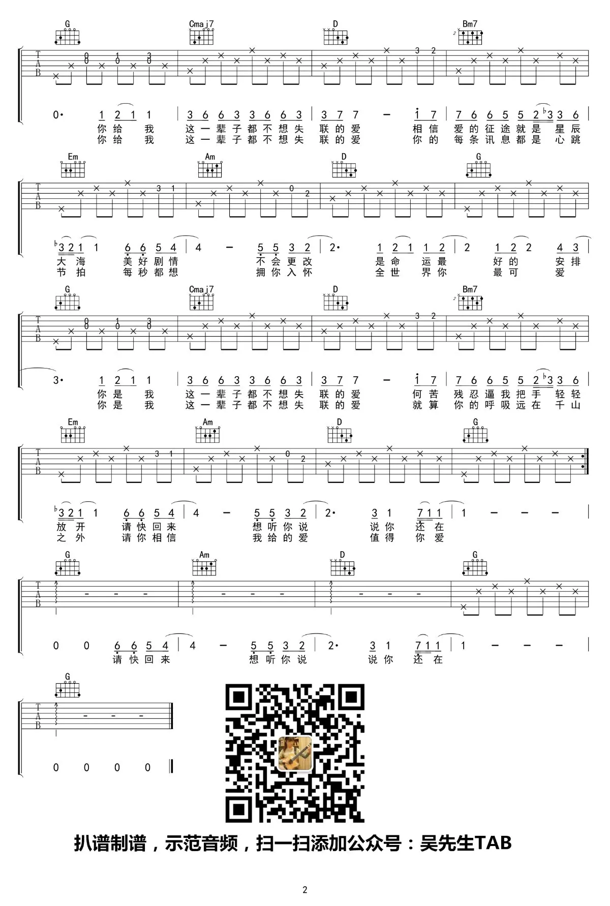 永不失联的爱吉他谱_周兴哲_G调_弹唱图片谱_高清六线谱