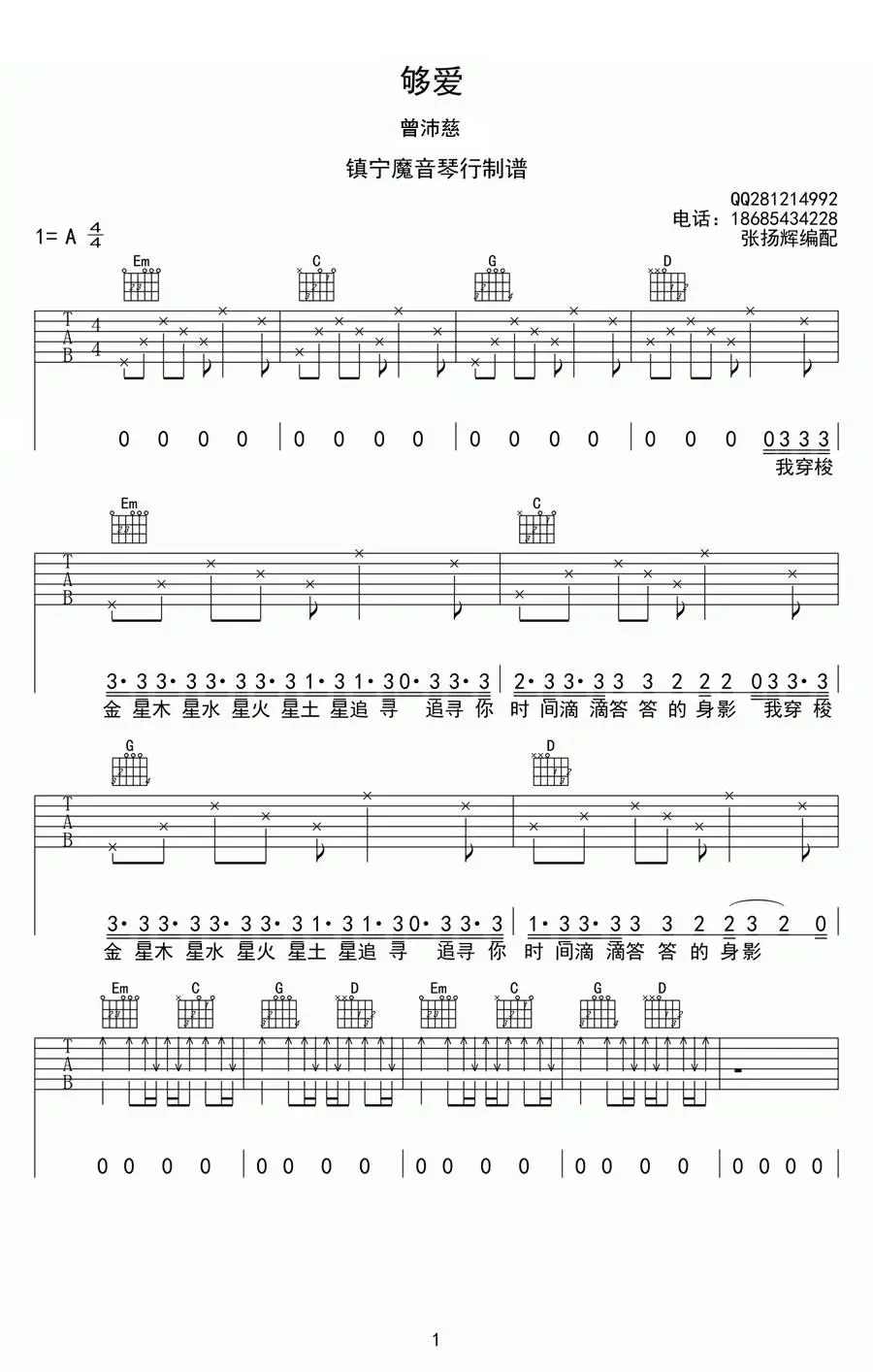《够爱》吉他谱_曾沛慈_A调_弹唱谱_六线图片谱