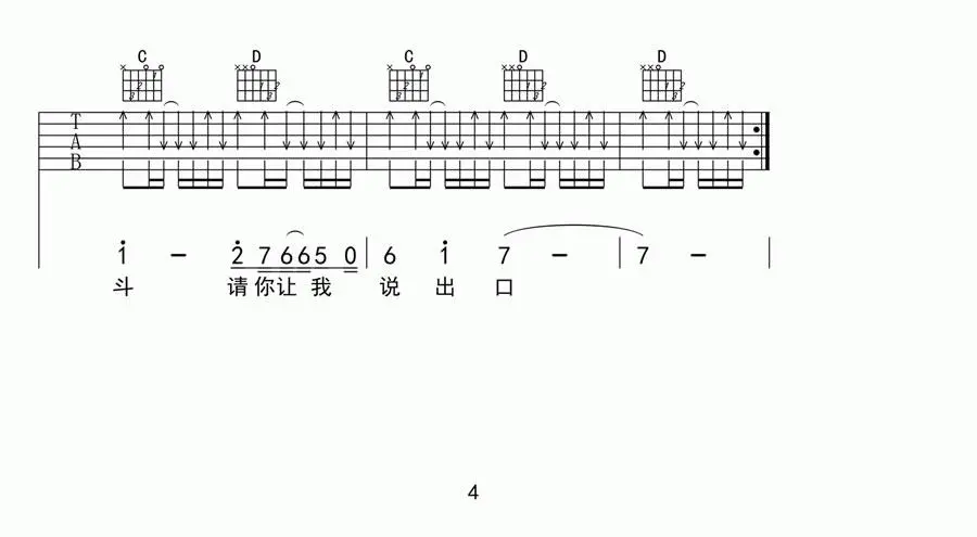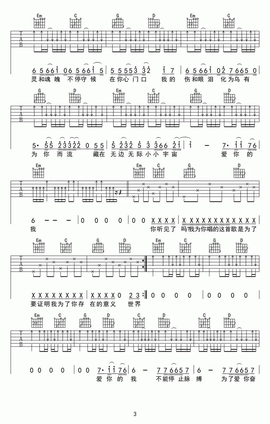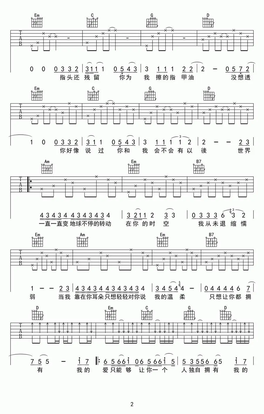 《一吻天荒》吉他谱_刘大壮_C调指法_高清六线图片谱