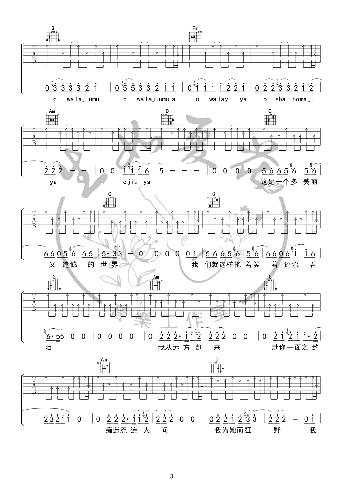 《每个人都会》吉他谱_方大同_C调_简单版_高清六线谱_弹唱谱