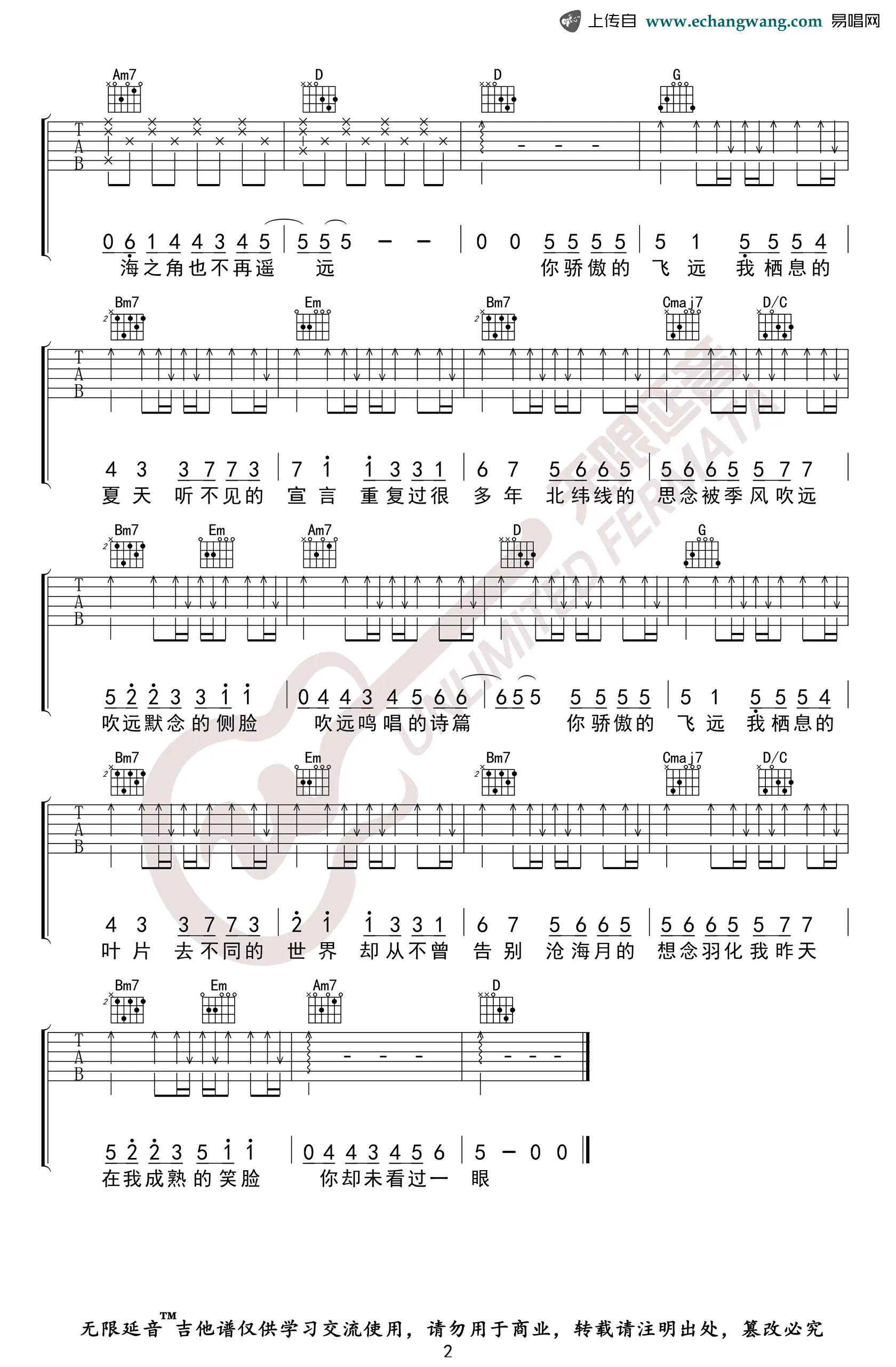 飞鸟和蝉吉他谱_任然_G调_热门抖音歌曲_弹唱谱_图片谱
