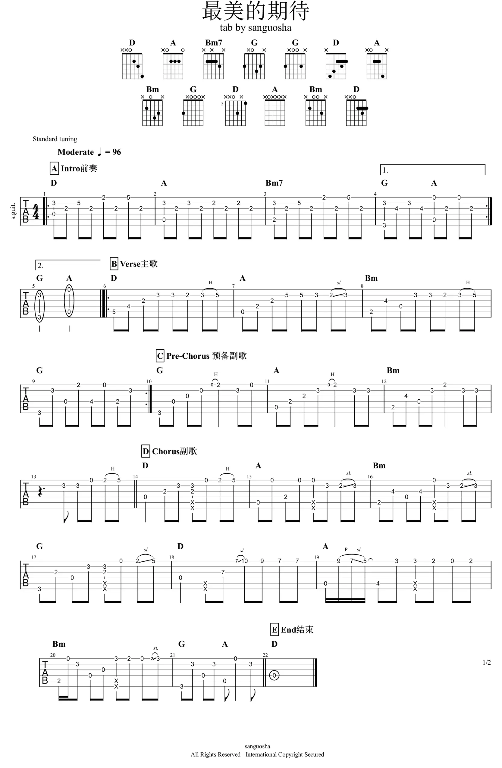 《最美的期待》指弹谱_周笔畅_吉他独奏谱_高清图片谱