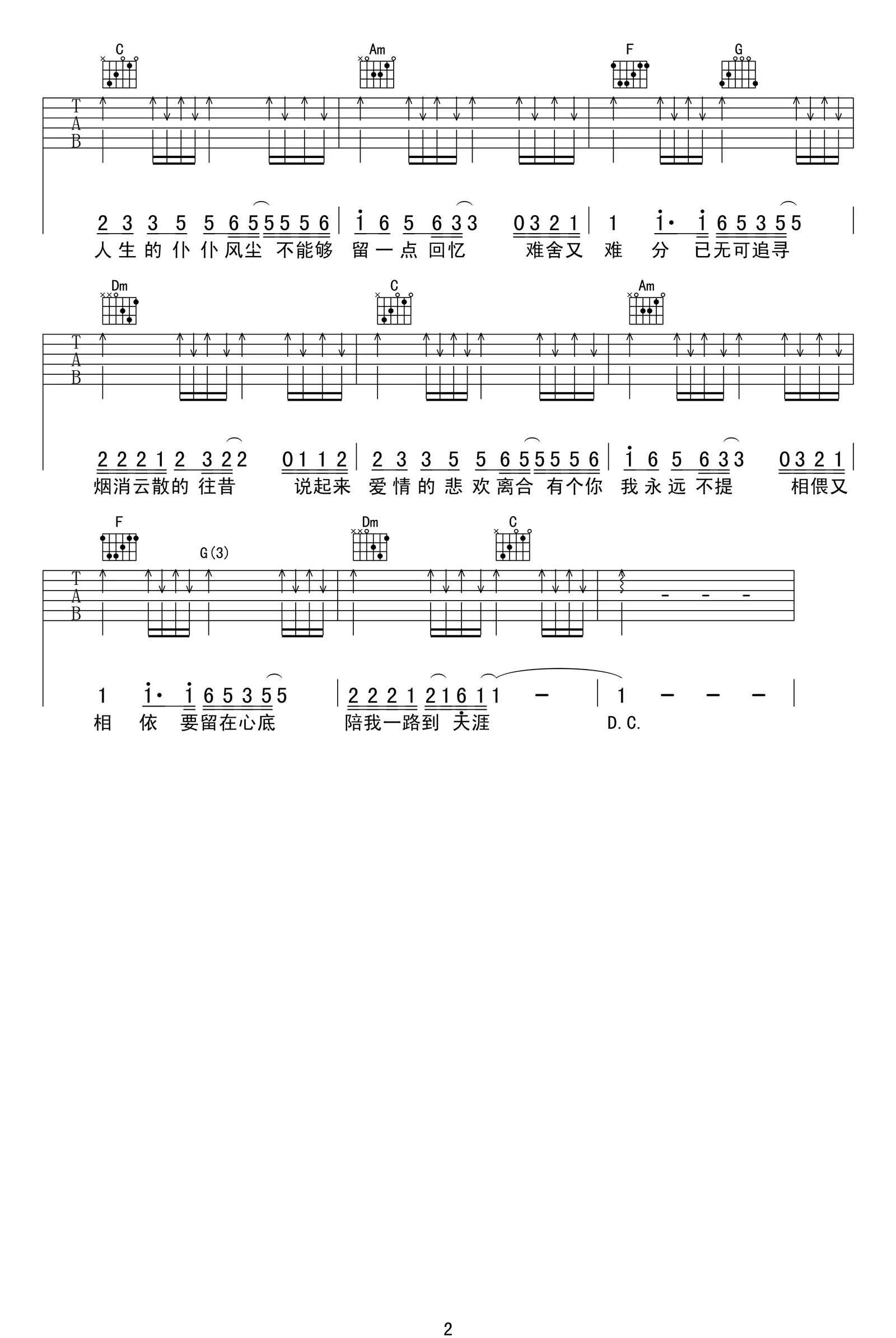 《每个人都会》吉他谱_方大同_C调_简单版_高清六线谱_弹唱谱