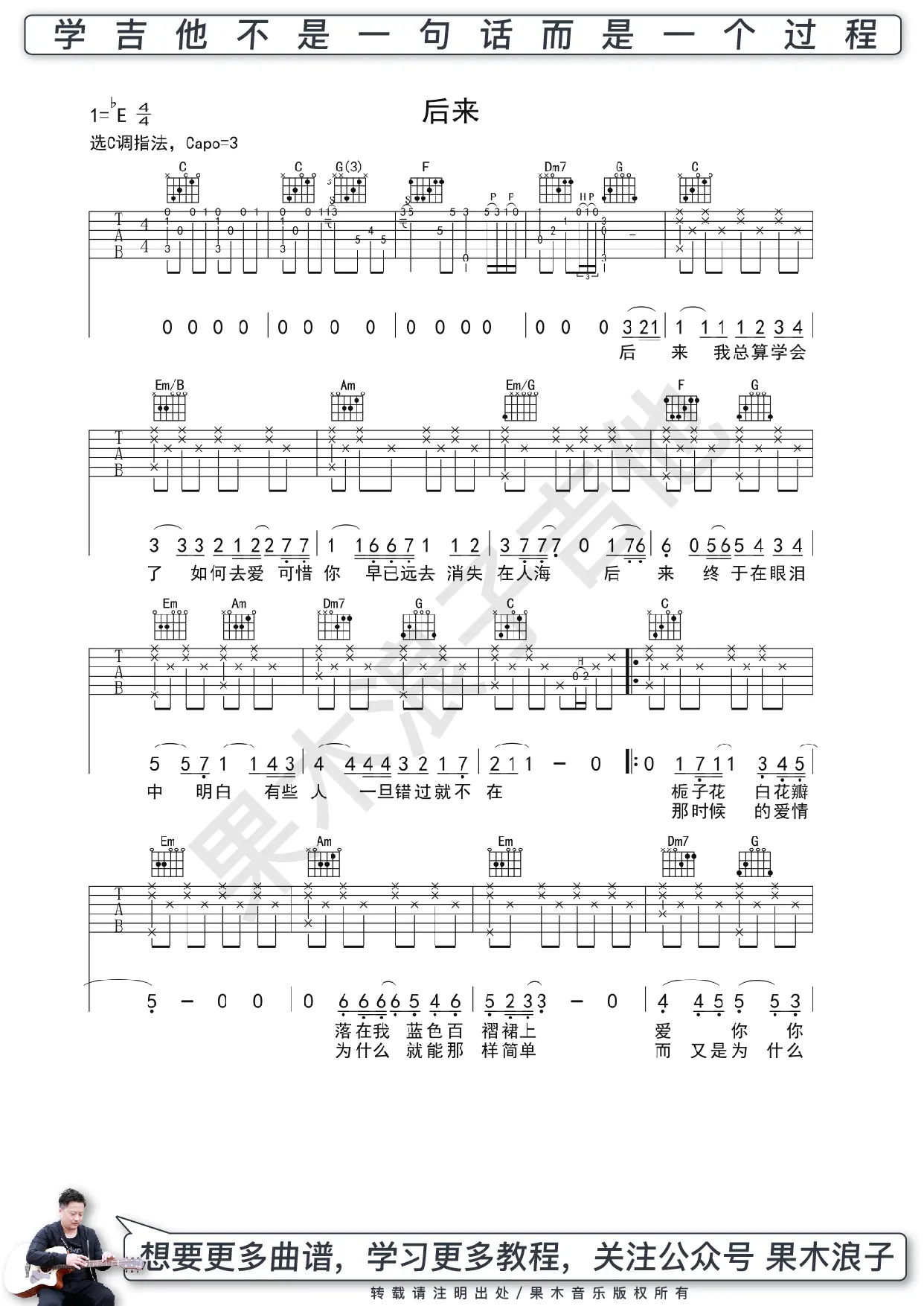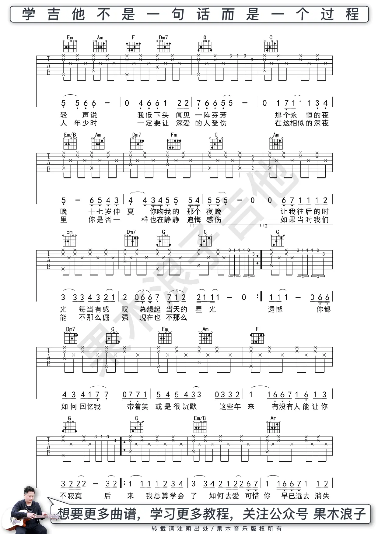 《每个人都会》吉他谱_方大同_C调_简单版_高清六线谱_弹唱谱