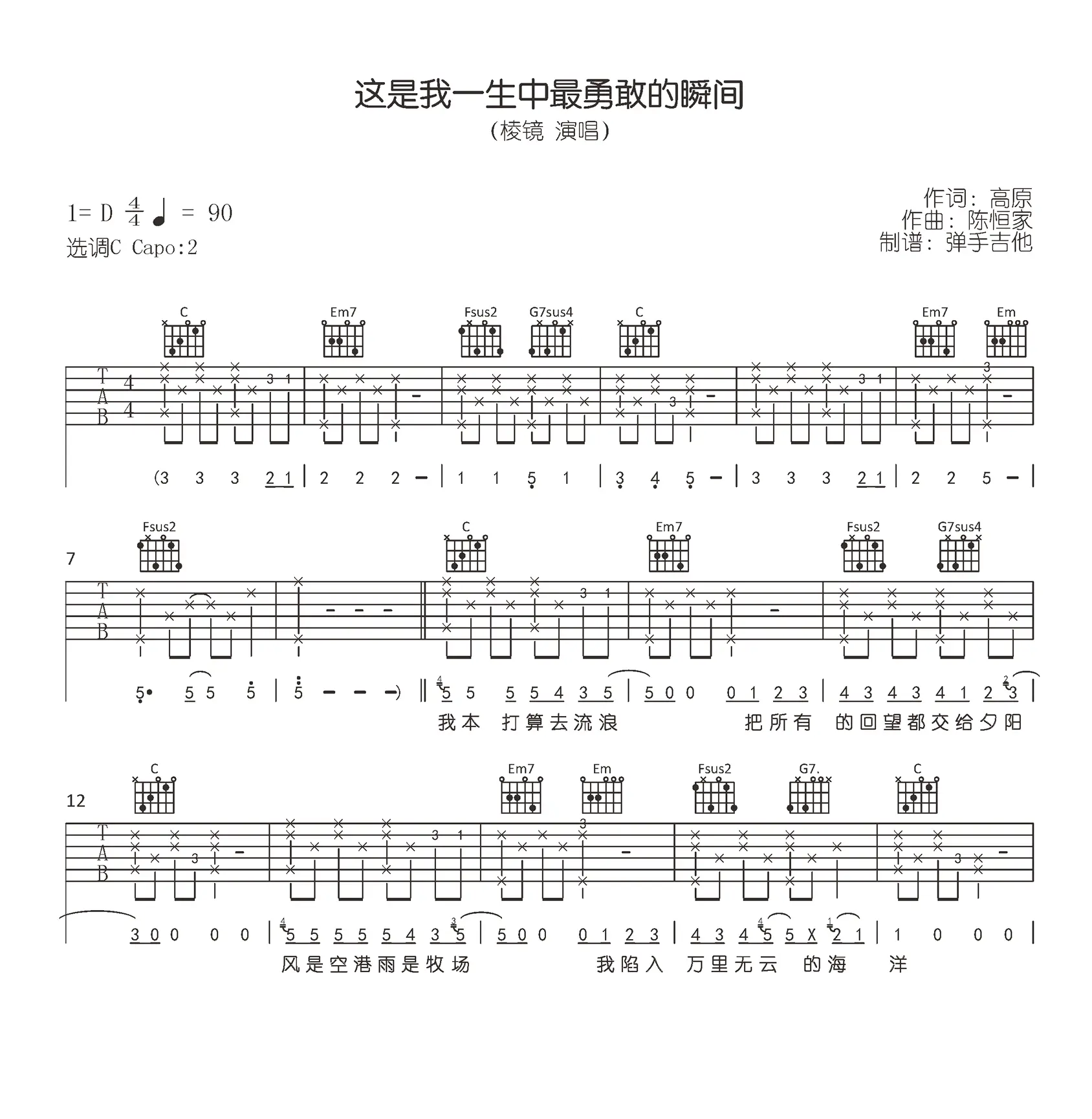 《这是我一生中最勇敢的瞬间》吉他谱_棱镜_C调弹唱谱_六线谱_图片谱