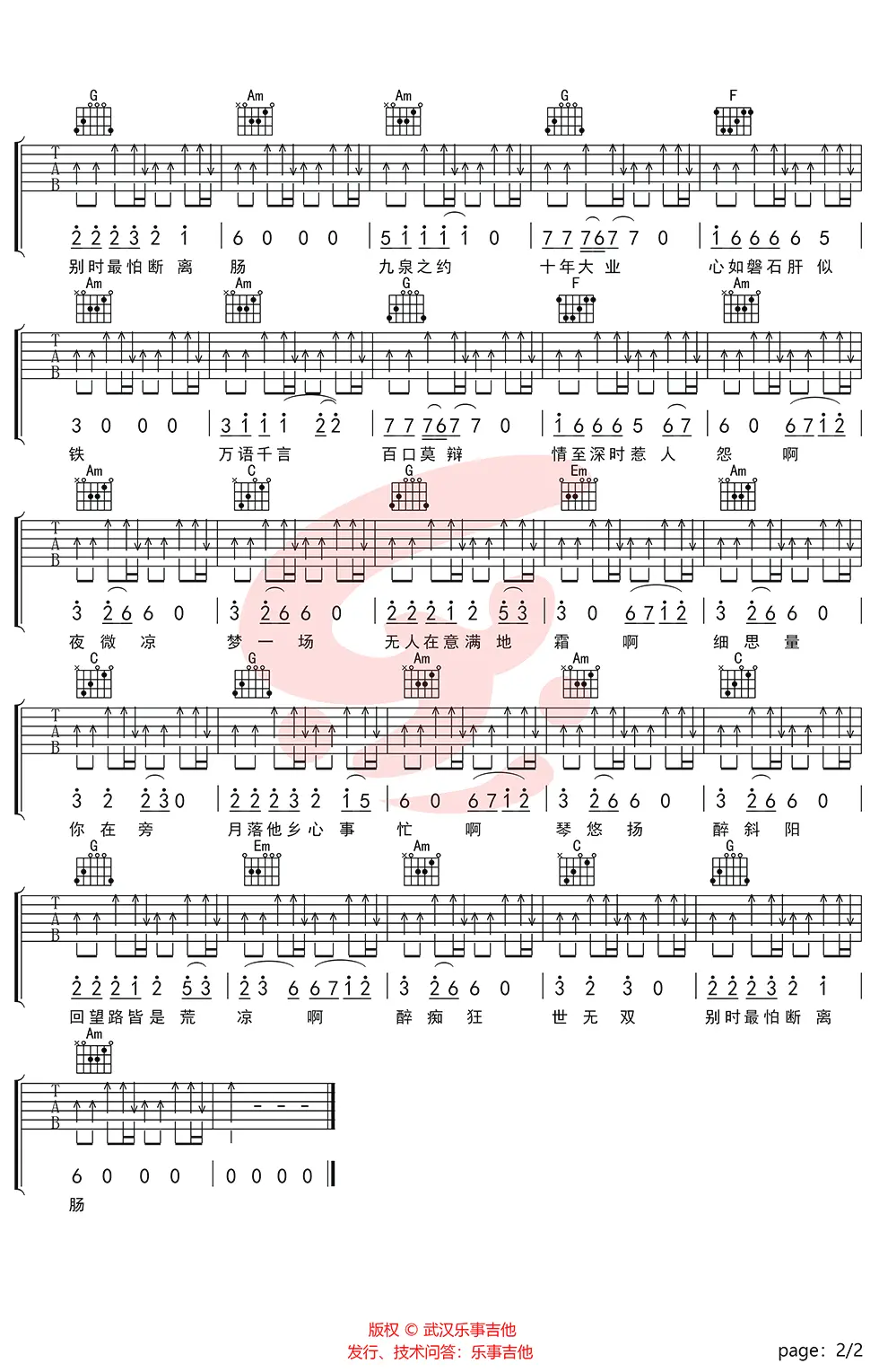 花粥《落霜》吉他谱,花粥演唱,杨剑军作词,陈伟伦作曲,2019年发行,奇幻爱情电影《傀儡姬》推广曲。歌曲原调bE,吉他谱选调C调,变调夹夹3品,演奏难度简单,由乐事吉他编配出品。