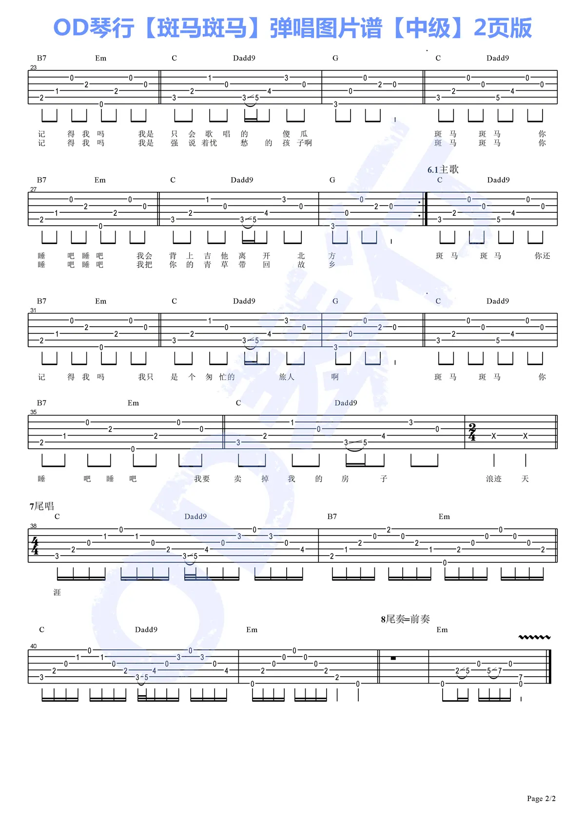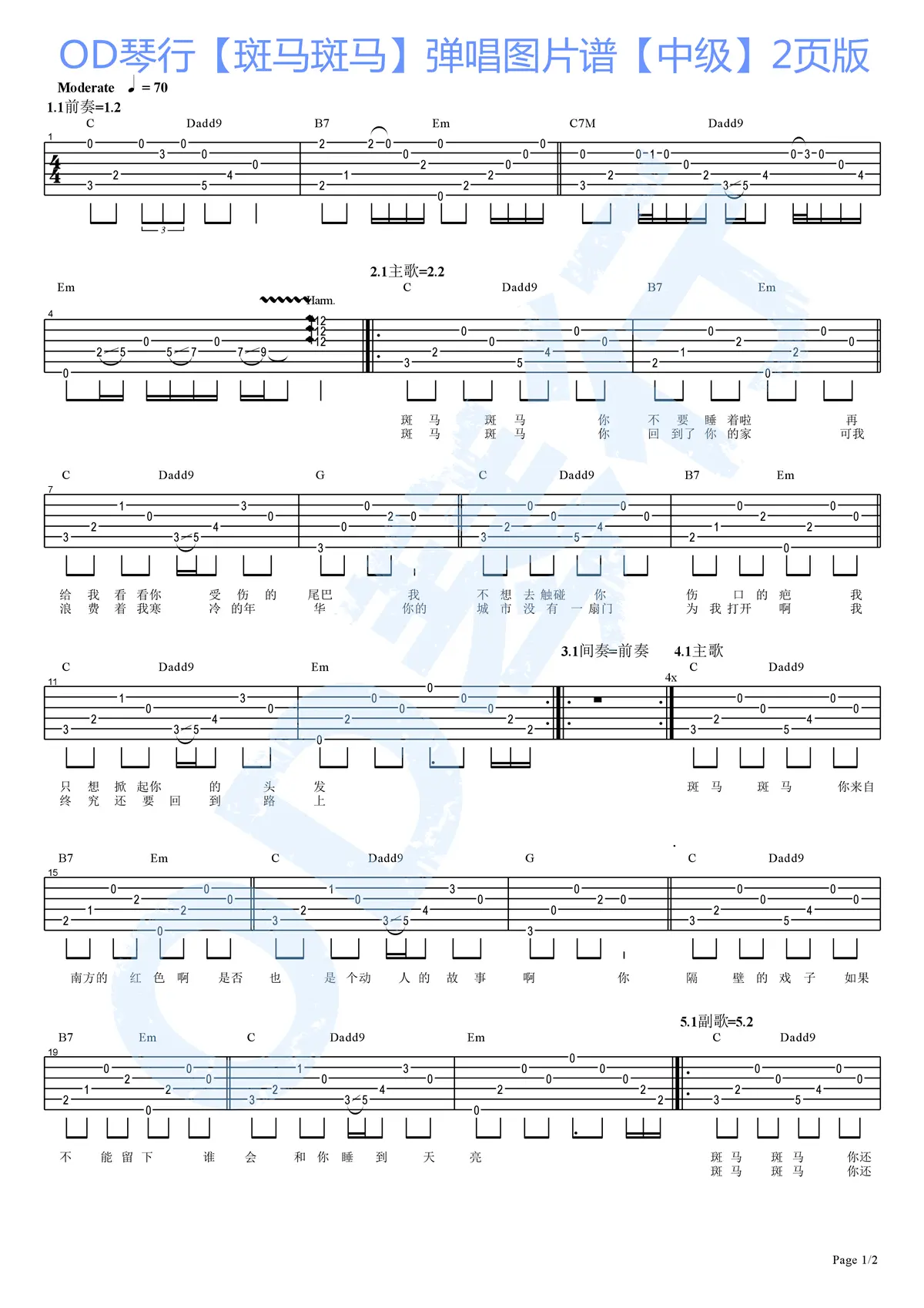 《斑马,斑马》吉他谱,宋冬野作词作曲及演唱的一首民谣歌曲,收录于2013年发行的专辑《安和桥北》中。 吉他谱演奏难度中级,共2张高清图片谱。