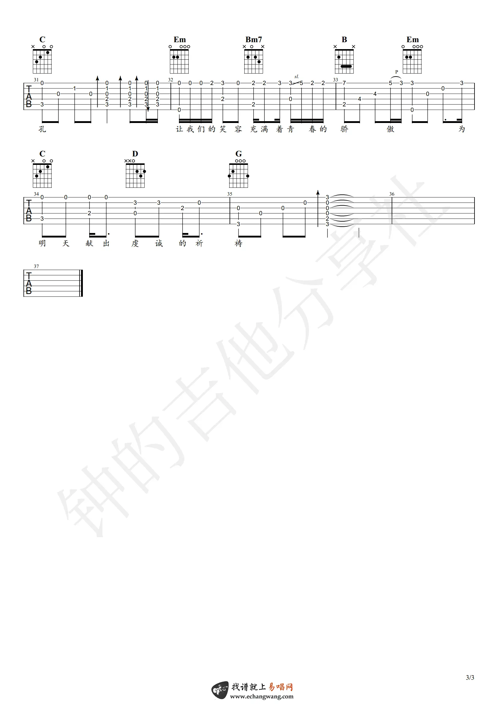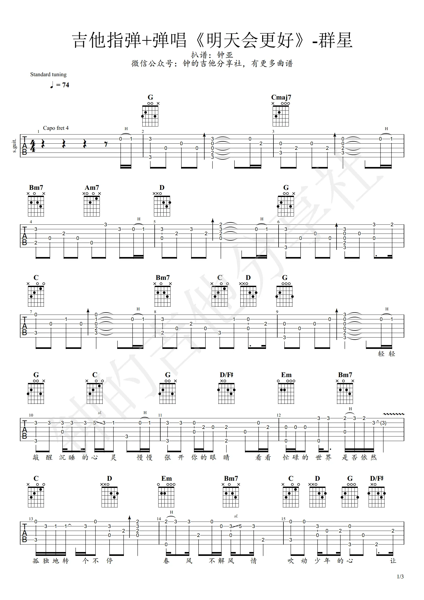 《明天会更好》吉他谱_指弹+弹唱谱_图片谱