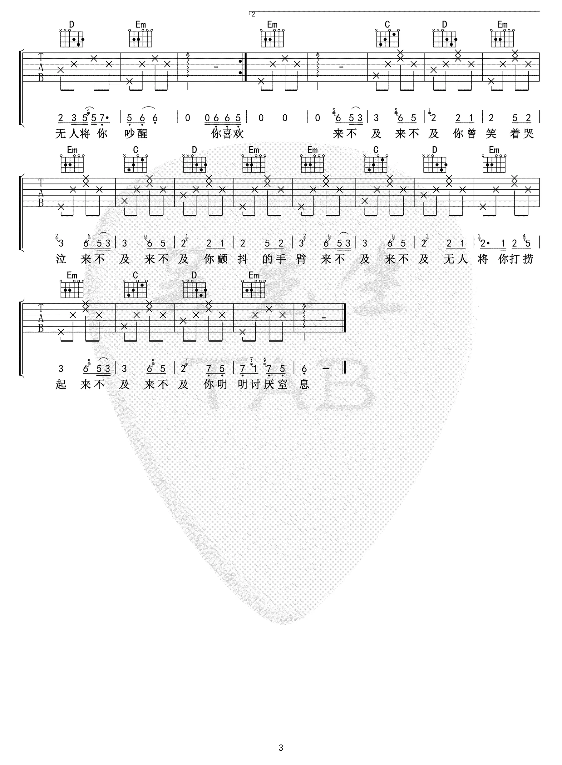 《斑马斑马》吉他谱_宋冬野_弹唱六线谱_高清图片谱