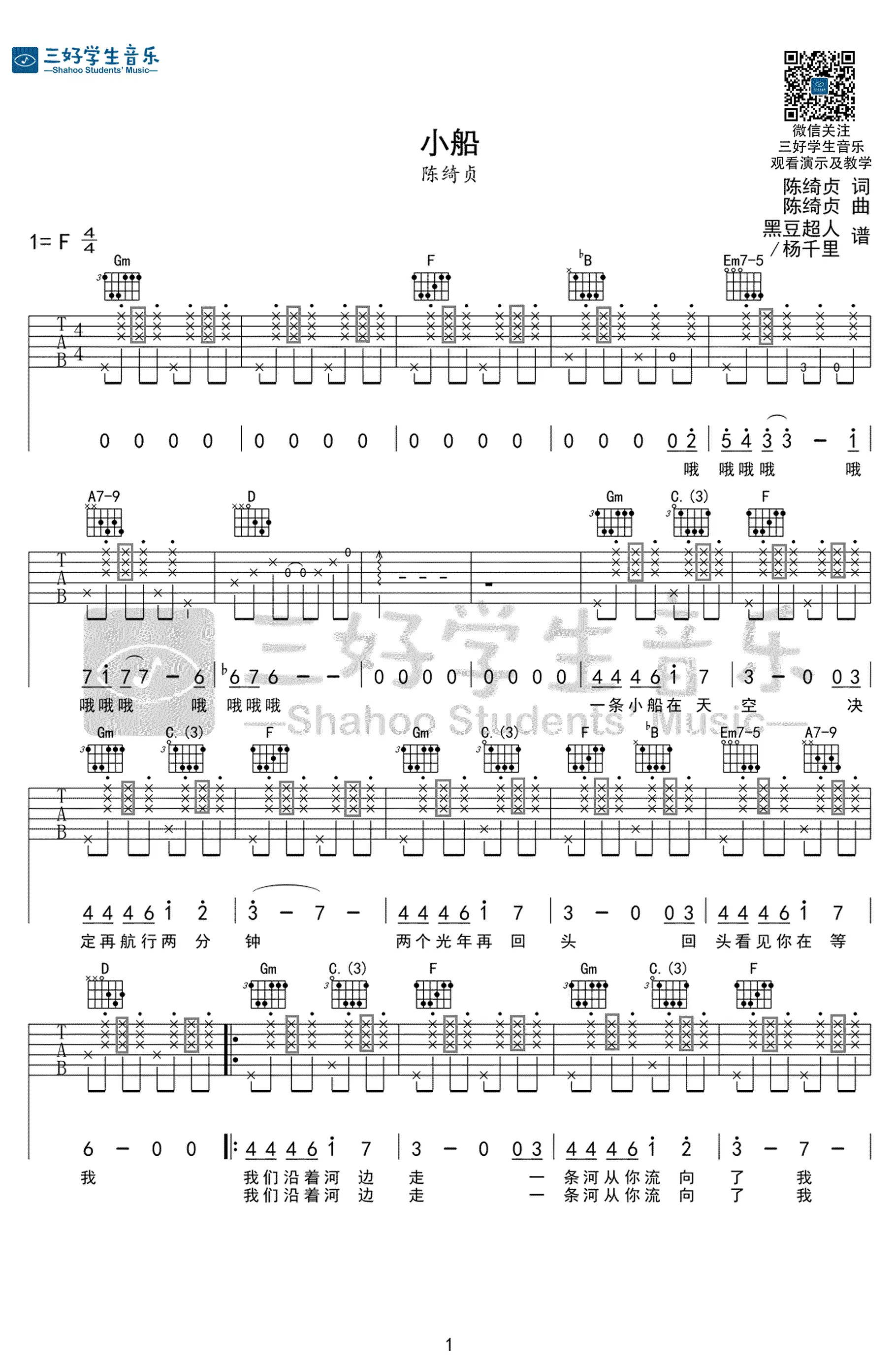 《小船》吉他弹唱谱,陈绮贞作词作曲及演唱,收录于2018年发行的专辑《沙发海》中,梦幻编曲营造童话氛围。吉他谱共3张高清图片谱,由黑豆超人和杨千里编配出品。