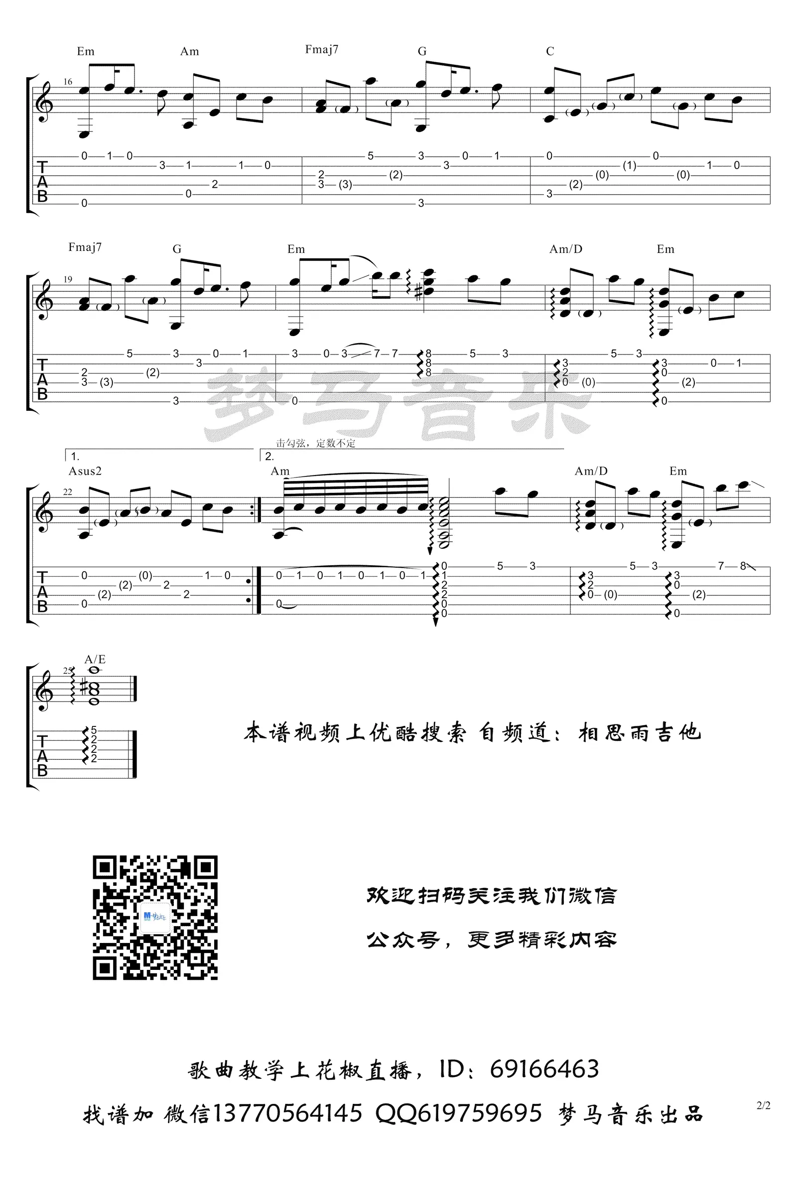 《纸短情长》吉他谱_D调指法_烟把儿乐队_六线谱_图片谱