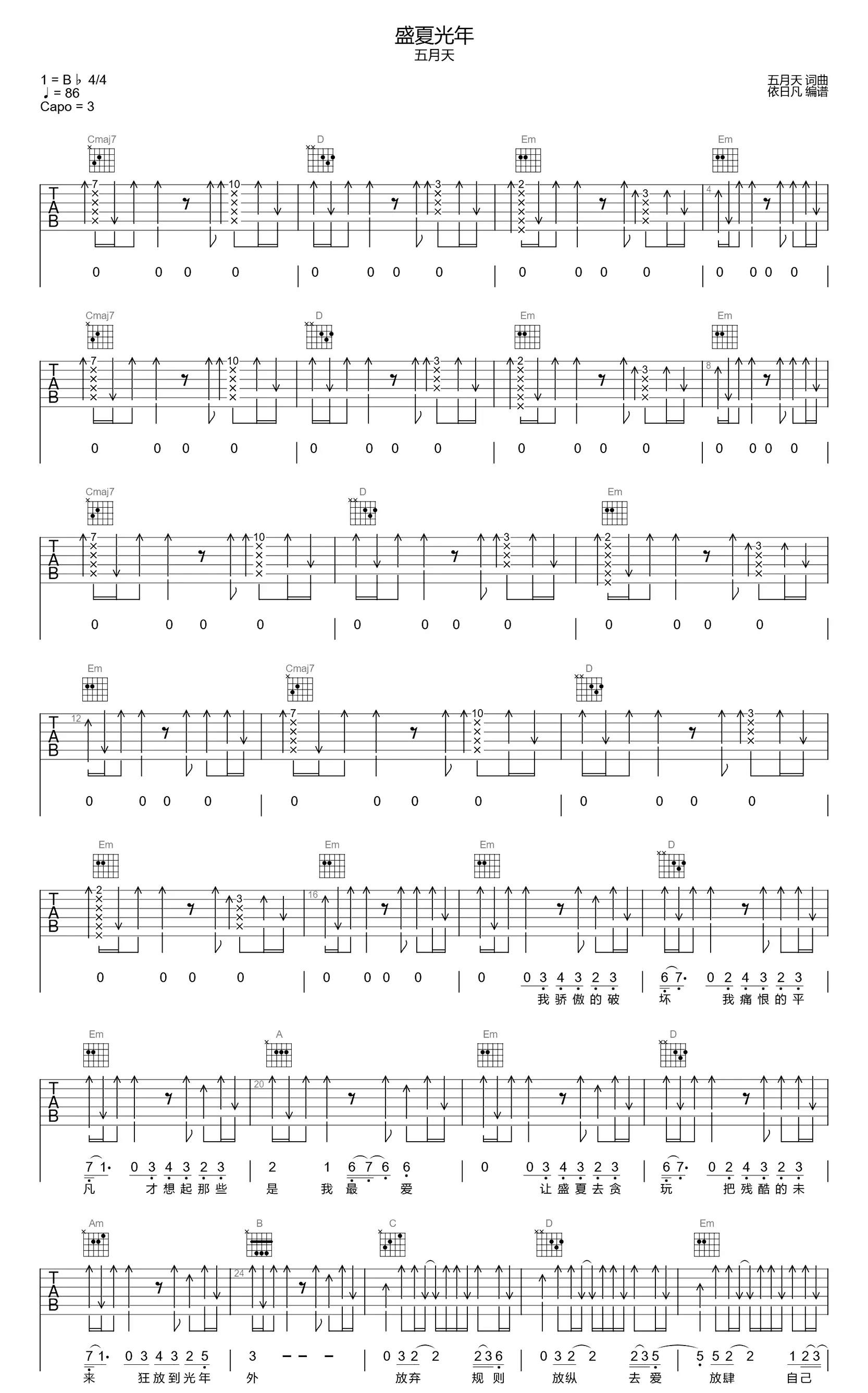 《盛夏光年》吉他谱_五月天_G调指法_六线谱_高清图片谱