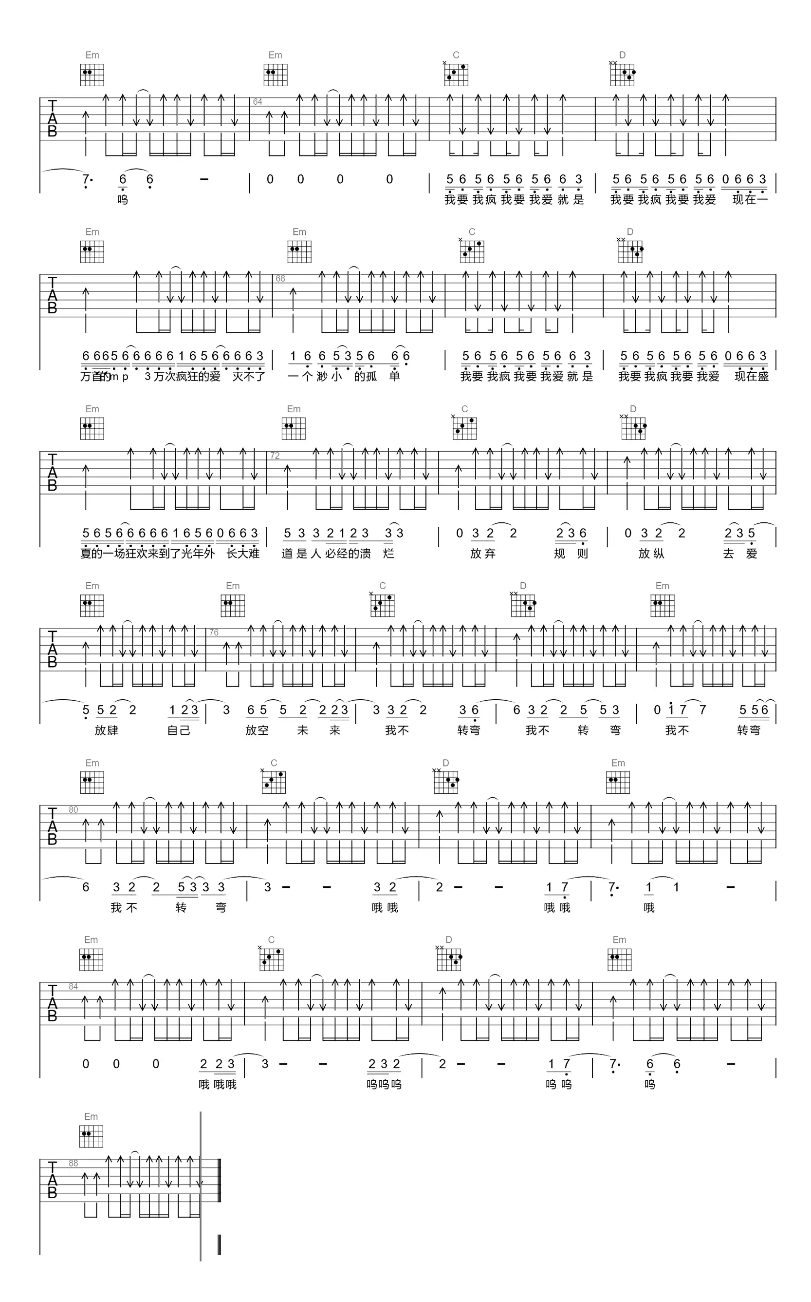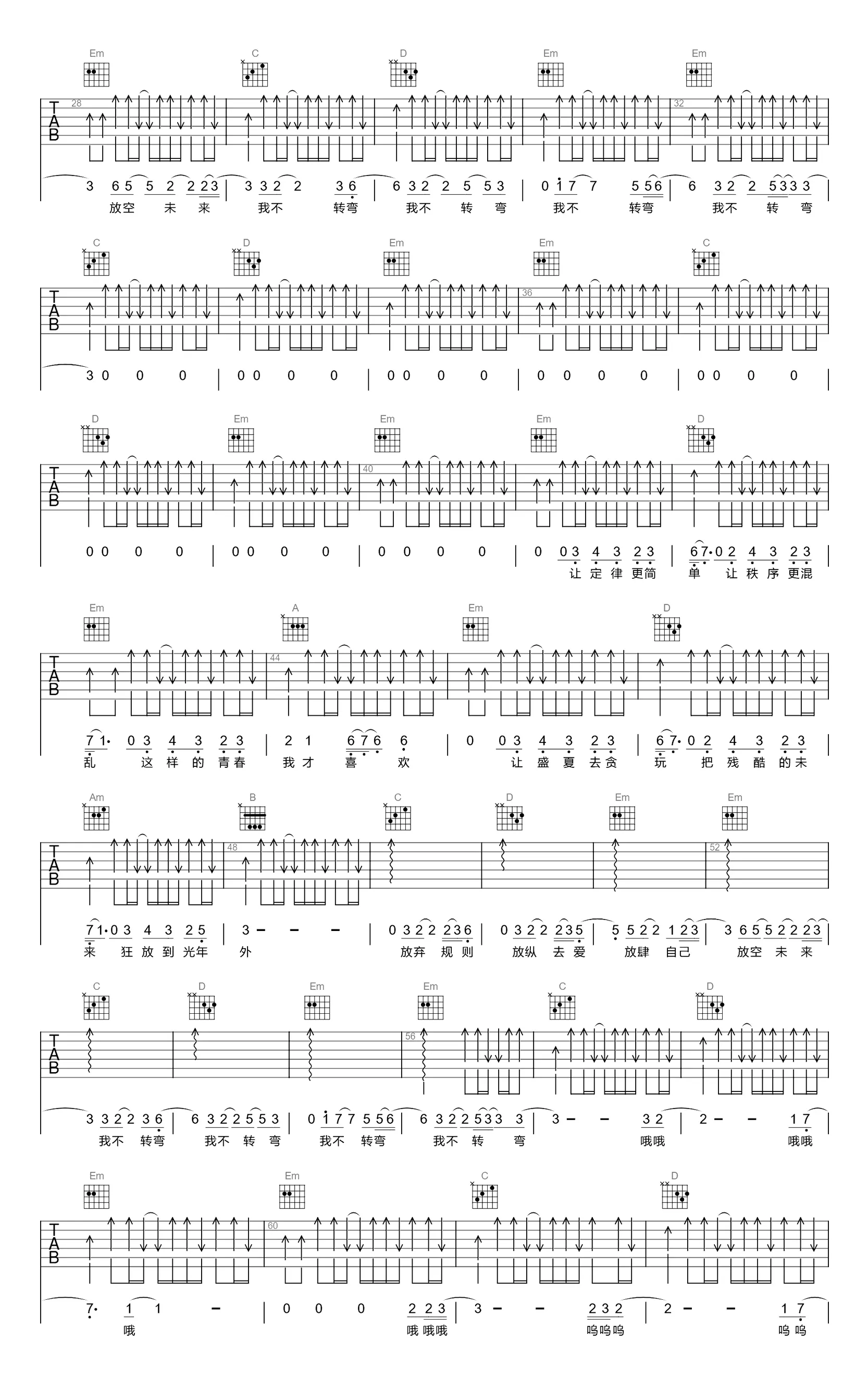 《滴答》吉他谱_侃侃_C调_高清弹唱谱_六线图片谱