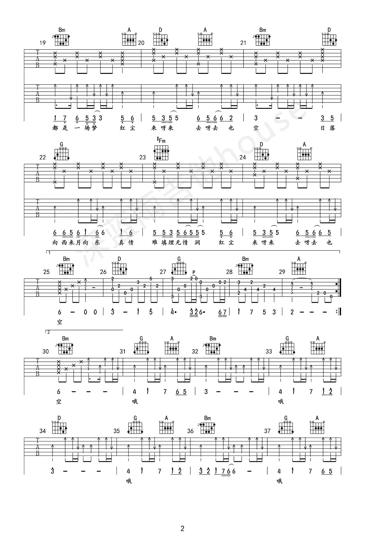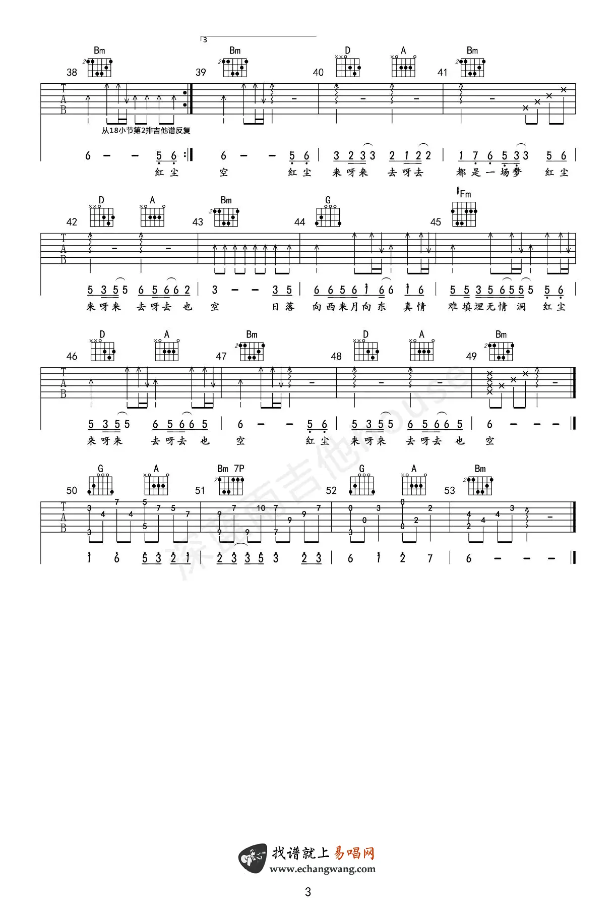 《红尘来去一场梦》吉他谱_杨宗纬_高清弹唱谱_图片谱