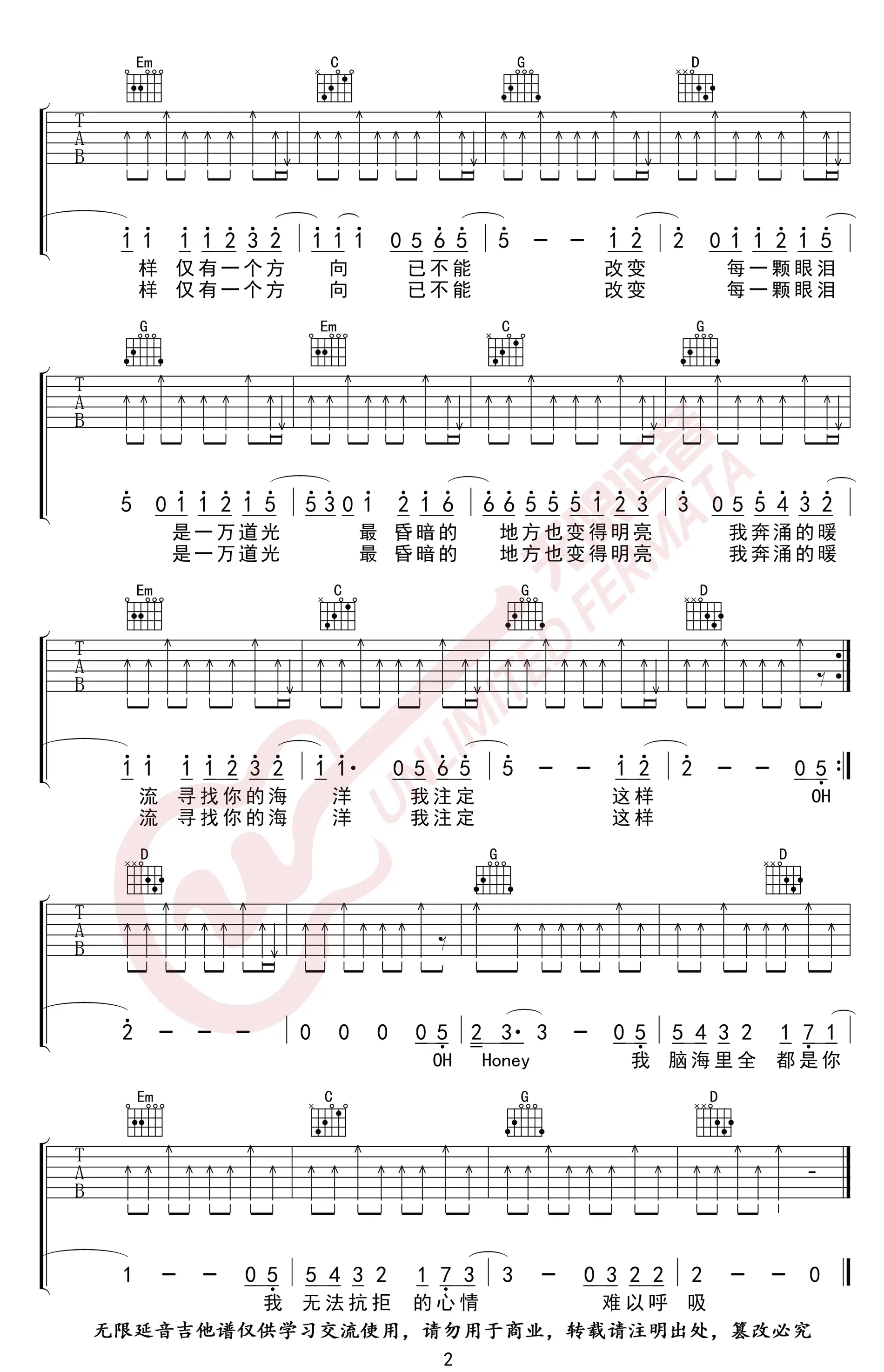 像鱼吉他谱_王贰浪_G调_高清六线弹唱谱_图片谱