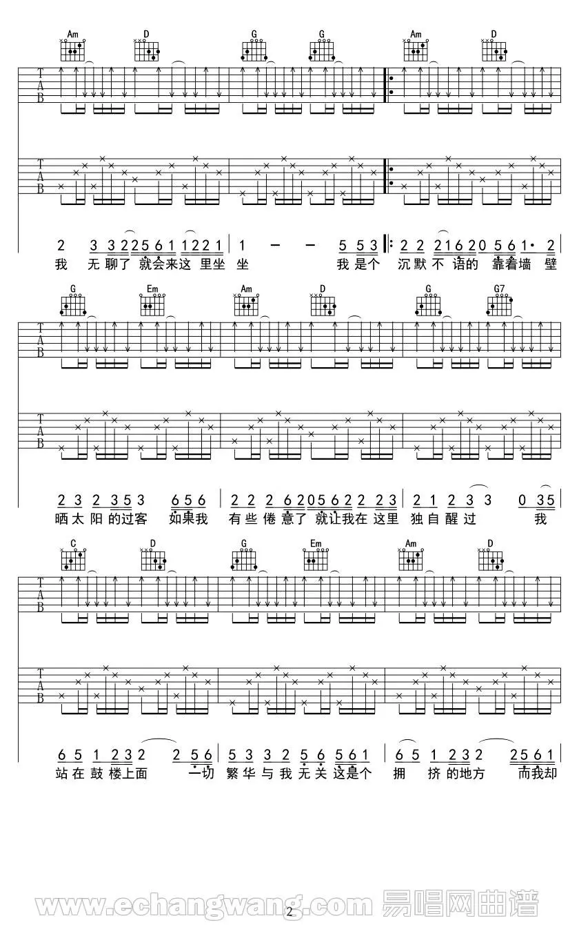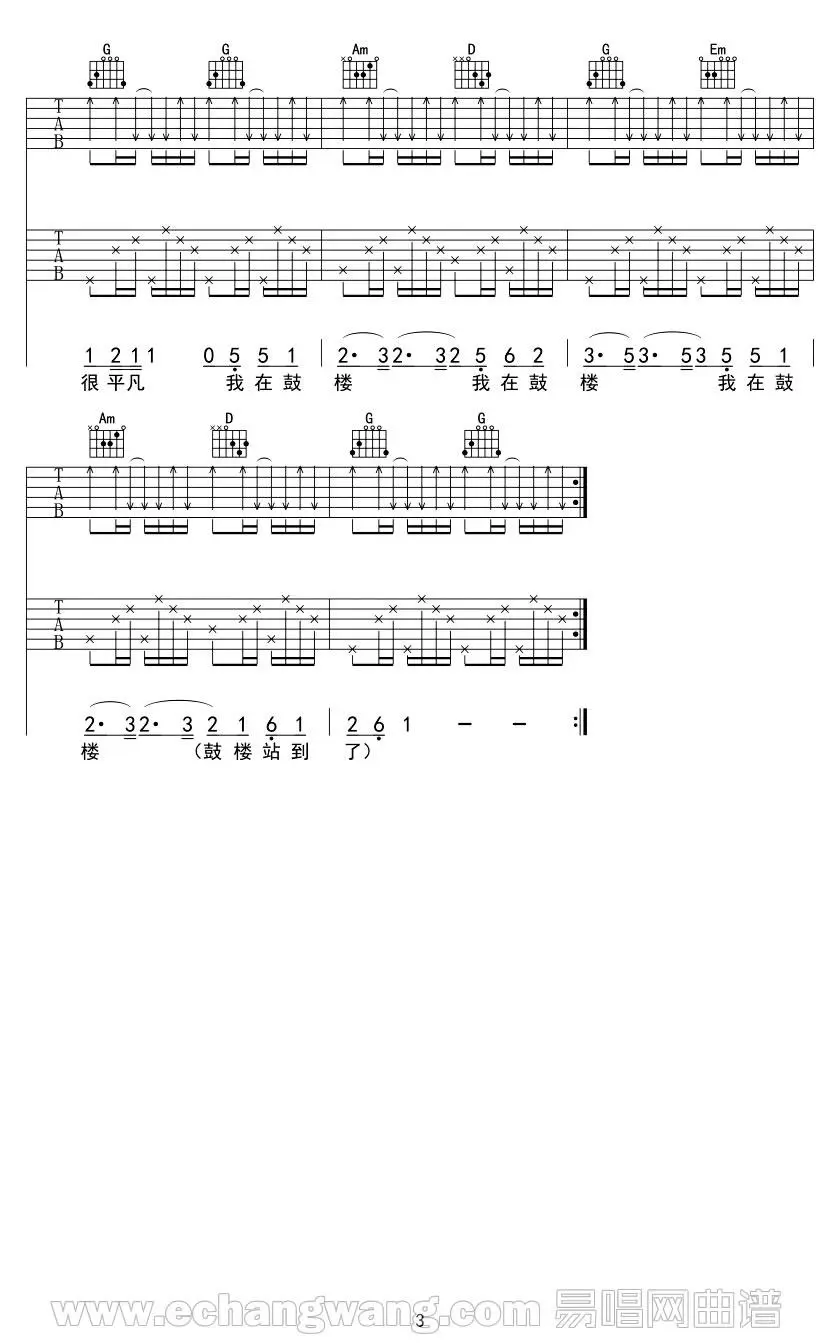 《鼓楼》吉他谱_赵雷_弹唱谱_图片谱_六线谱