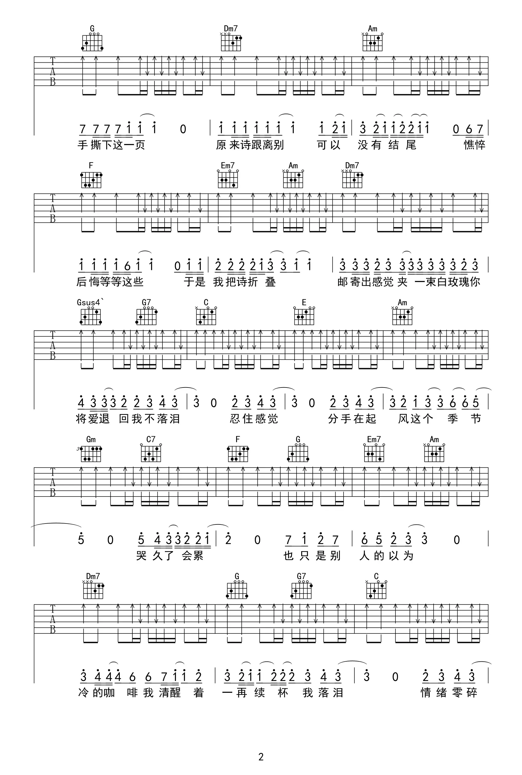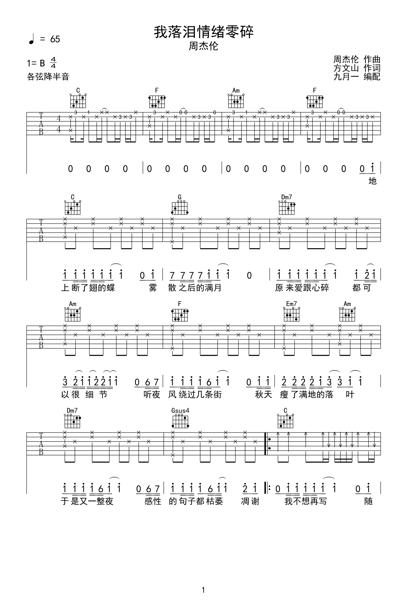 《我落泪情绪零碎》吉他谱,周杰伦演唱的一首歌曲,由方文山作词,周杰伦作曲,收录于2010年发行的专辑《跨时代》中。吉他谱选用B调指法编配,降半音调弦,共3张高清图片谱。