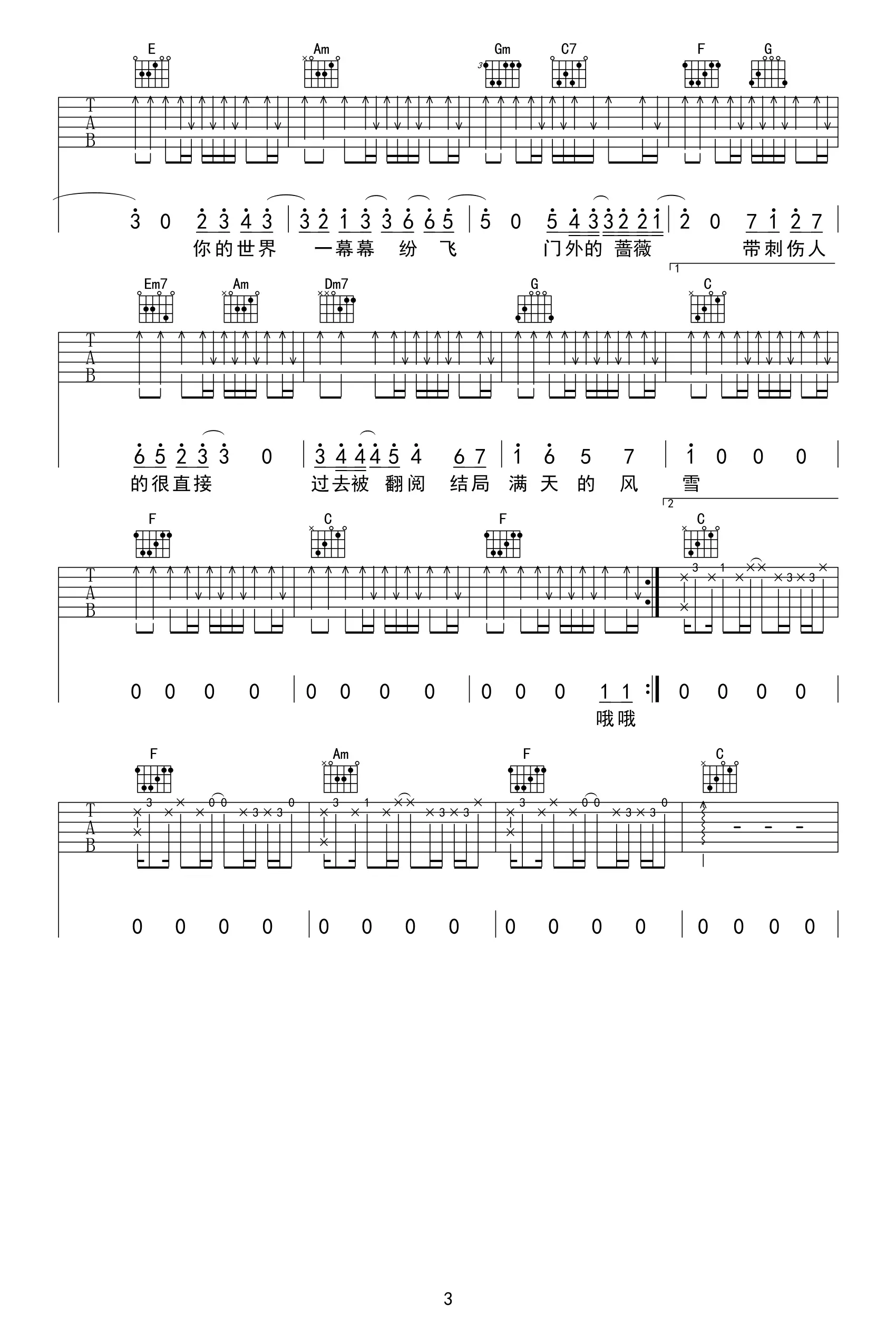 《蜗牛》吉他谱_周杰伦_C调弹唱谱_图片谱