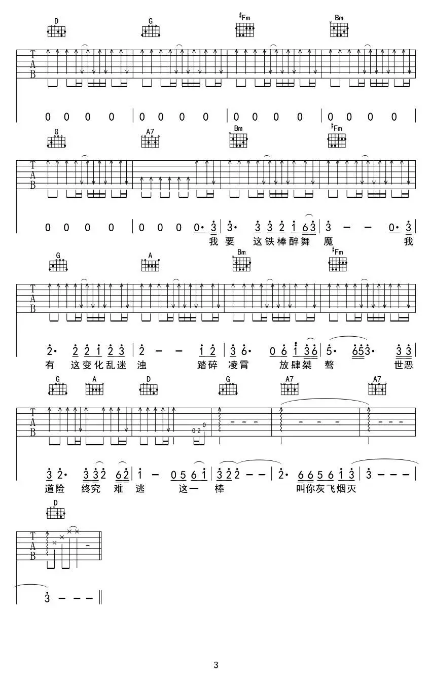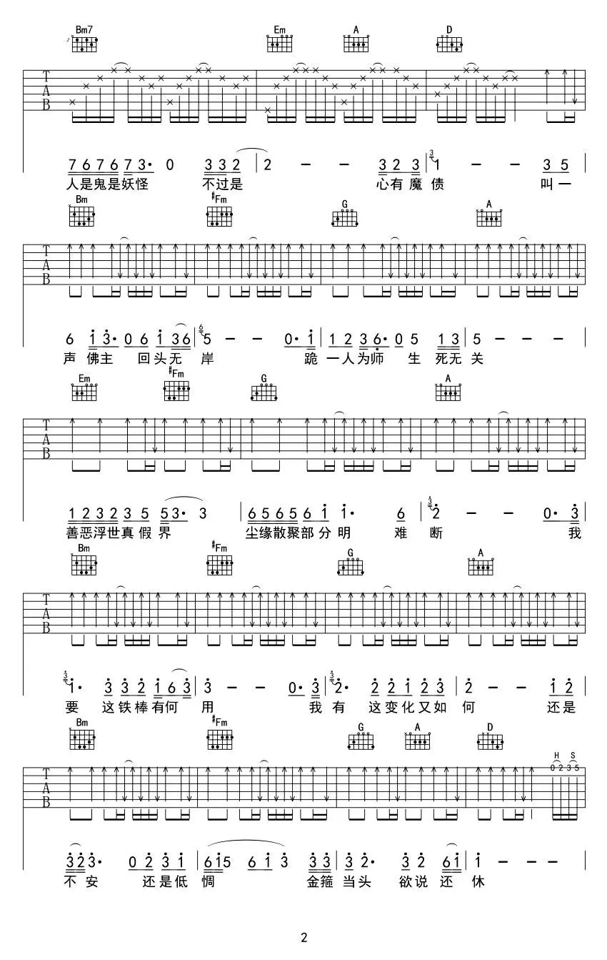 《悟空》吉他谱_戴荃_契合大圣归来_完整版六线谱