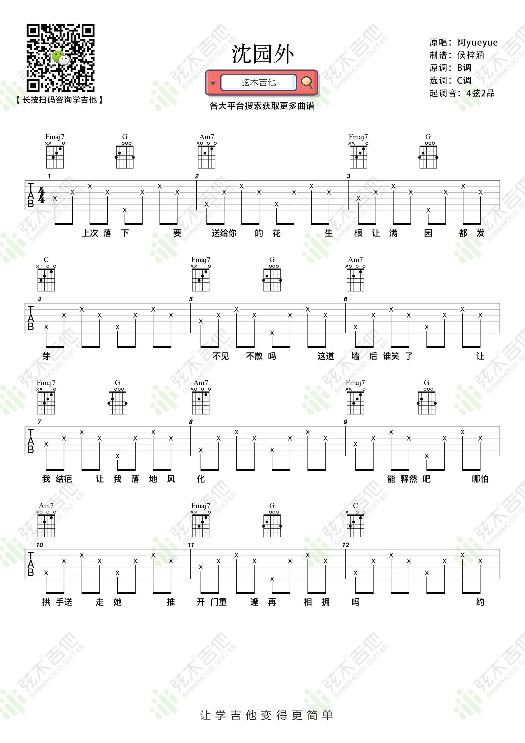 《沈园外》吉他谱_阿yueyue_C调_高清弹唱谱_图片谱