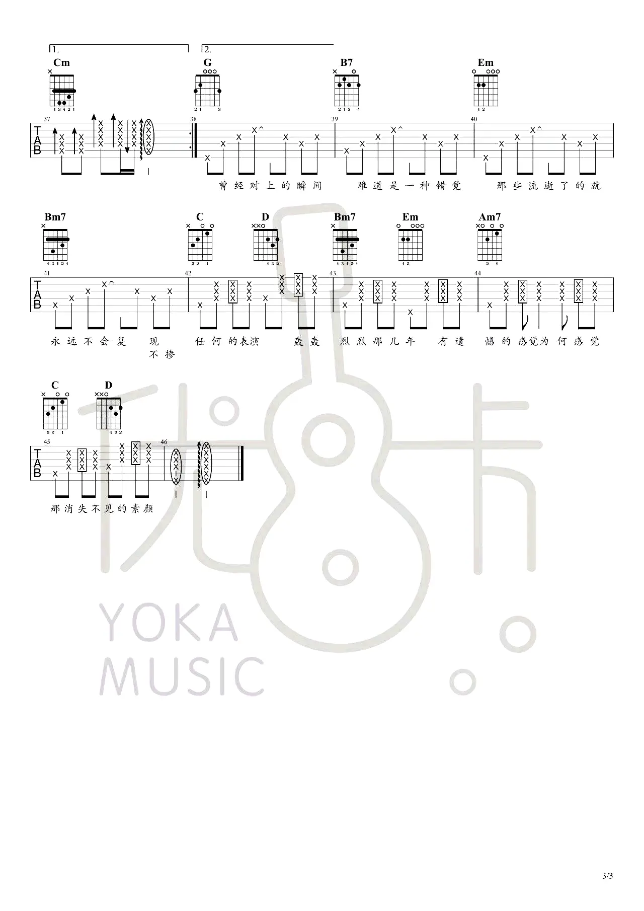 《沈园外》吉他谱_阿yueyue_C调_高清弹唱谱_图片谱
