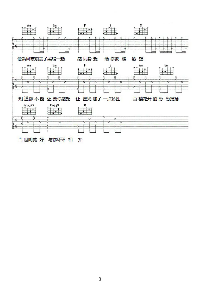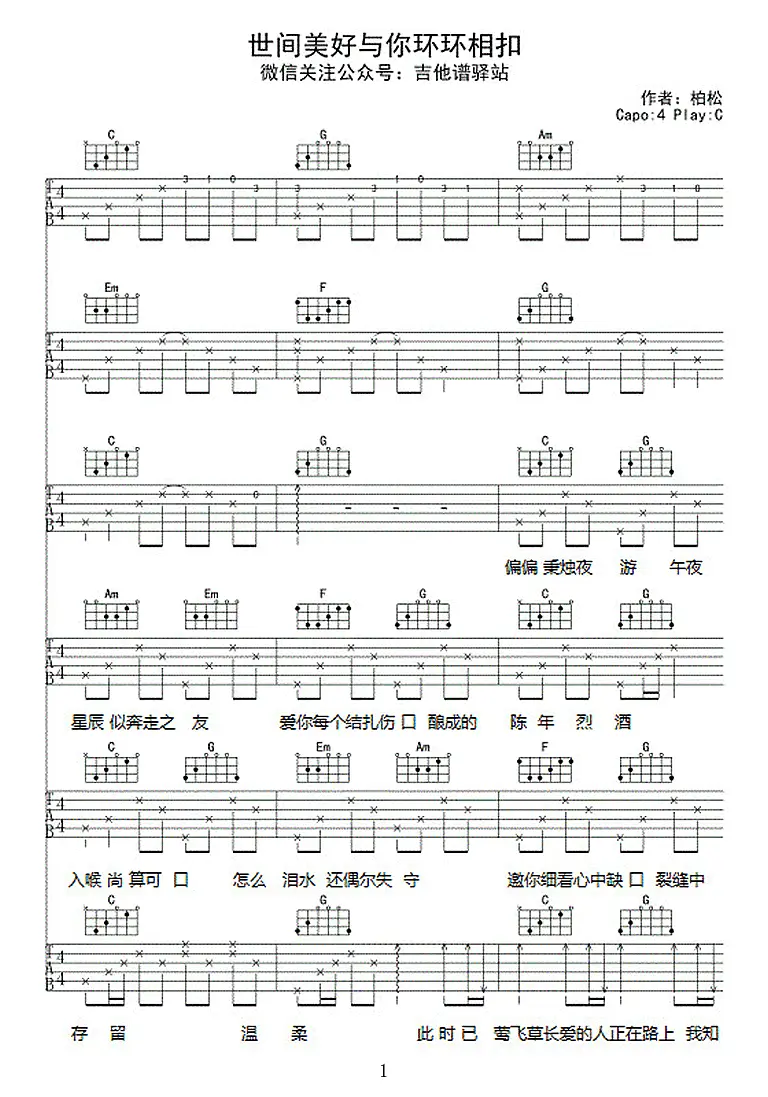 世间美好与你环环相扣吉他谱_柏松_C调_图片谱_六线谱