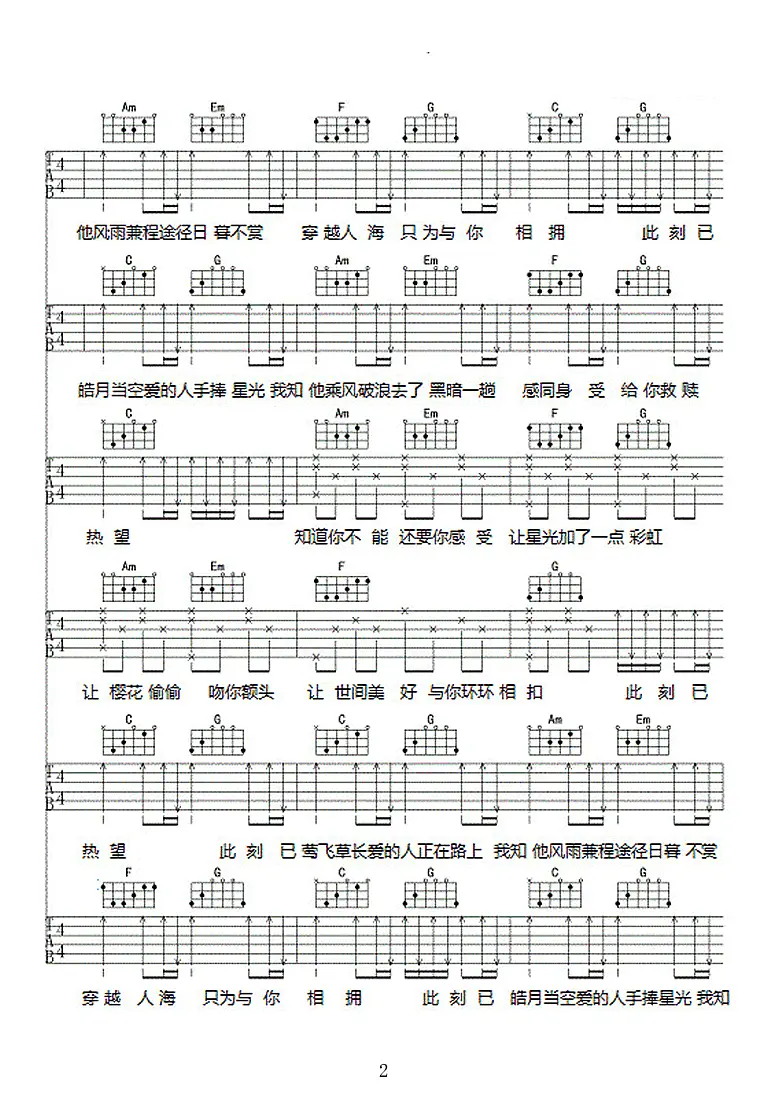 我一定会爱上你吉他谱_谢春花_C调弹唱谱_高清六线谱