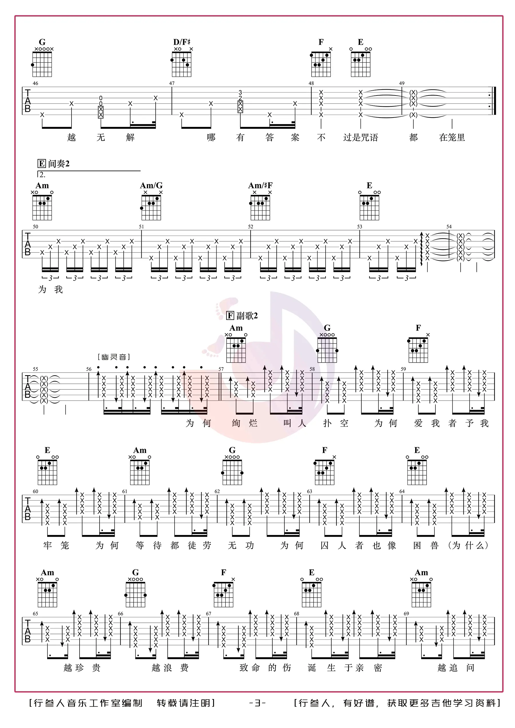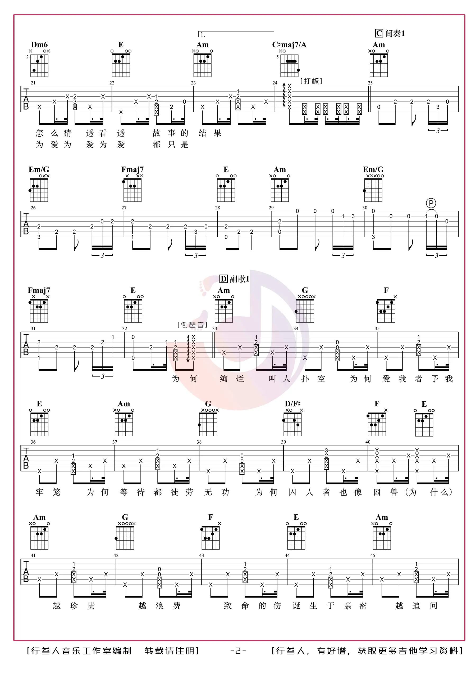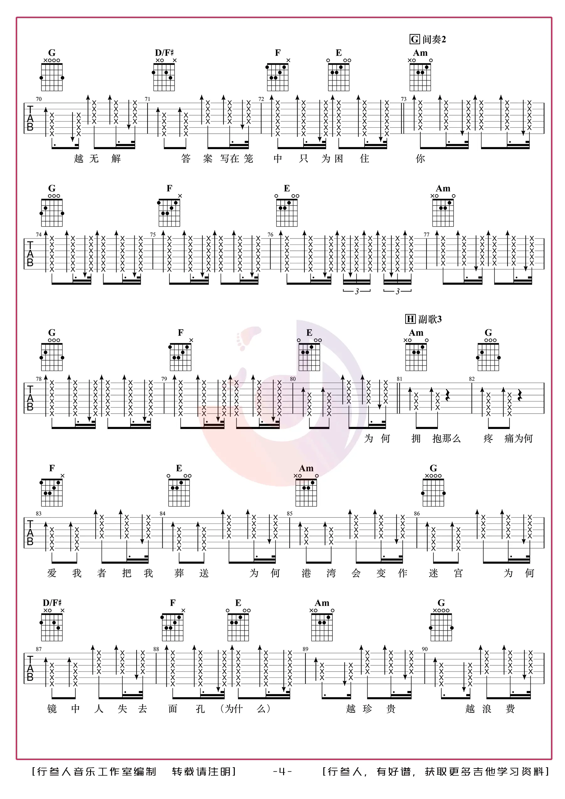 平凡之路指弹谱_失物森林编配_吉他独奏谱_图片谱