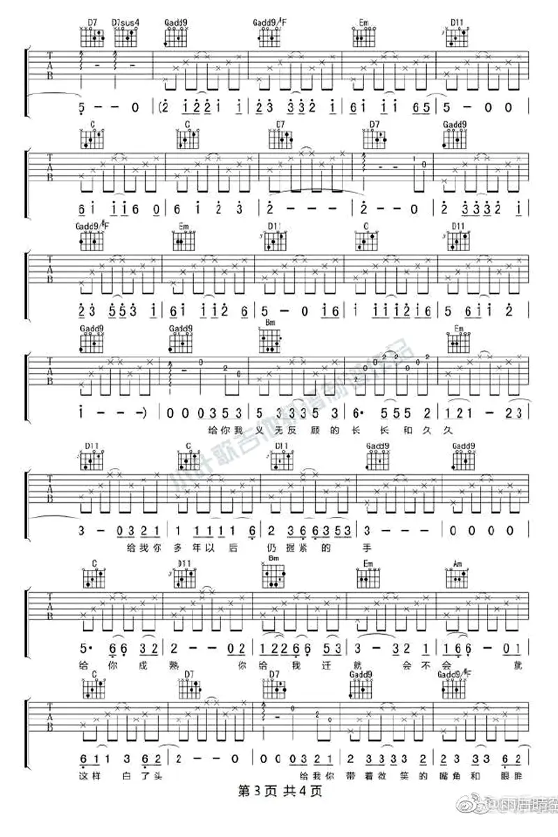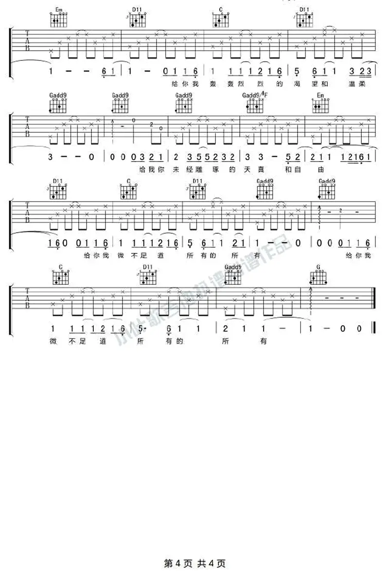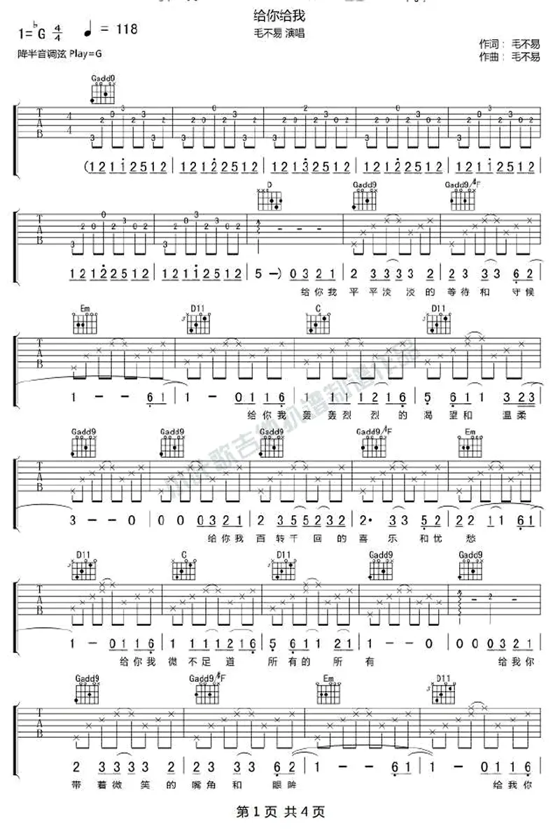 给你给我吉他谱_毛不易_G调指法_弹唱谱_高清图片谱