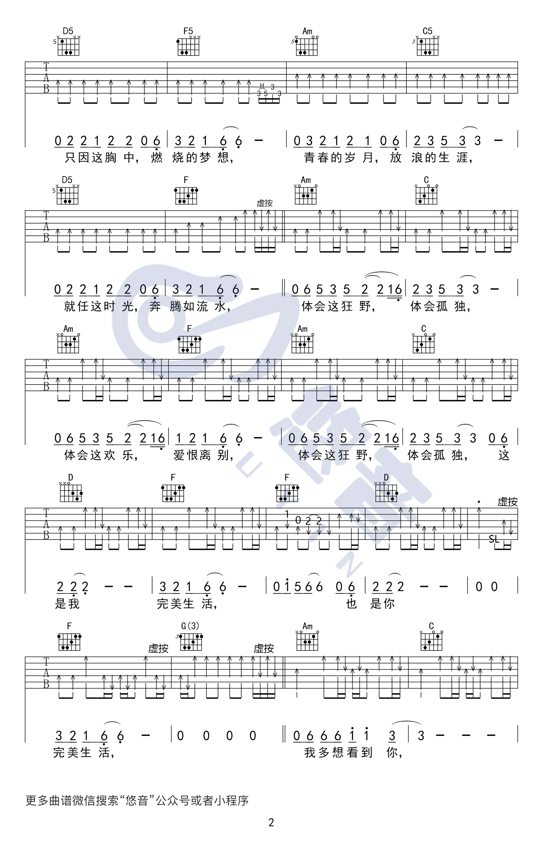 《完美生活》指弹谱_许巍_高清图片谱_吉他独奏谱